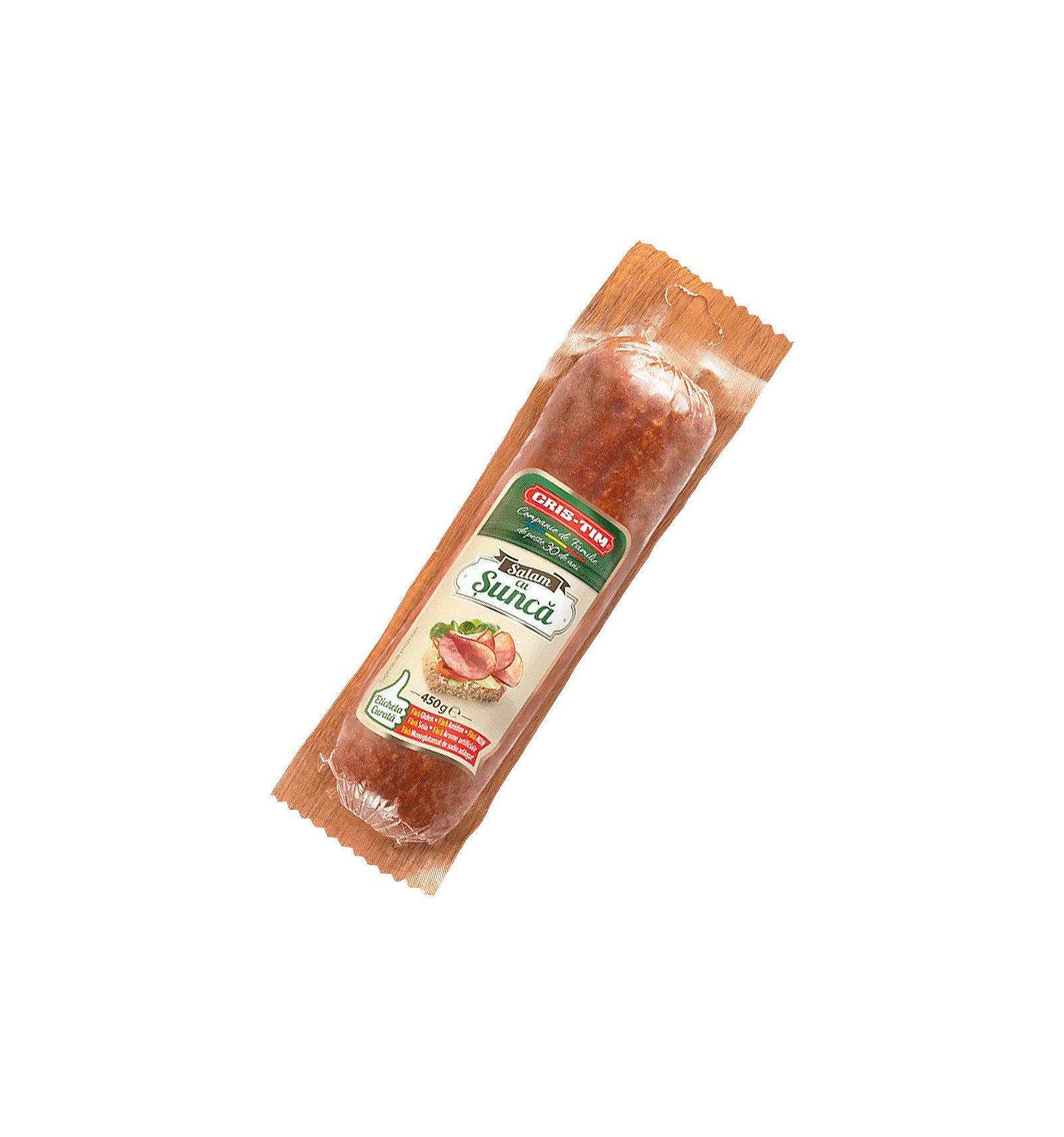 Ingredientes: carne de cerdo, agua, jamón 25% (contiene pierna de cerdo, sal, ajo), corteza, estabilizantes (difosfatos), antioxidante (eritrobato de sodio), aromas naturales, dextrosa, especias, proteína animal de cerdo, fibras vegetales, aroma natural de humo, colorante (carmin), conservante (nitrito de sodio). El producto puede contener trazas de: leche, lactosa, apio, mostaza.