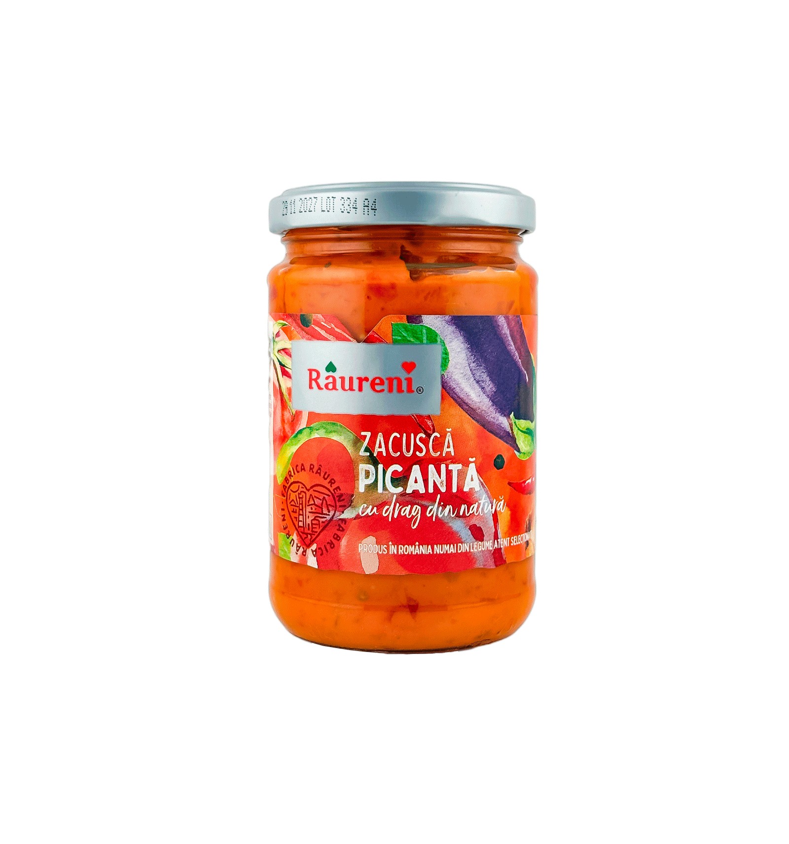 Ingredientes: berenjenas asadas 40%, pimientos, cebolla, tomate, aceite de girasol, pasta de tomate, azúcar, sal, pimienta.