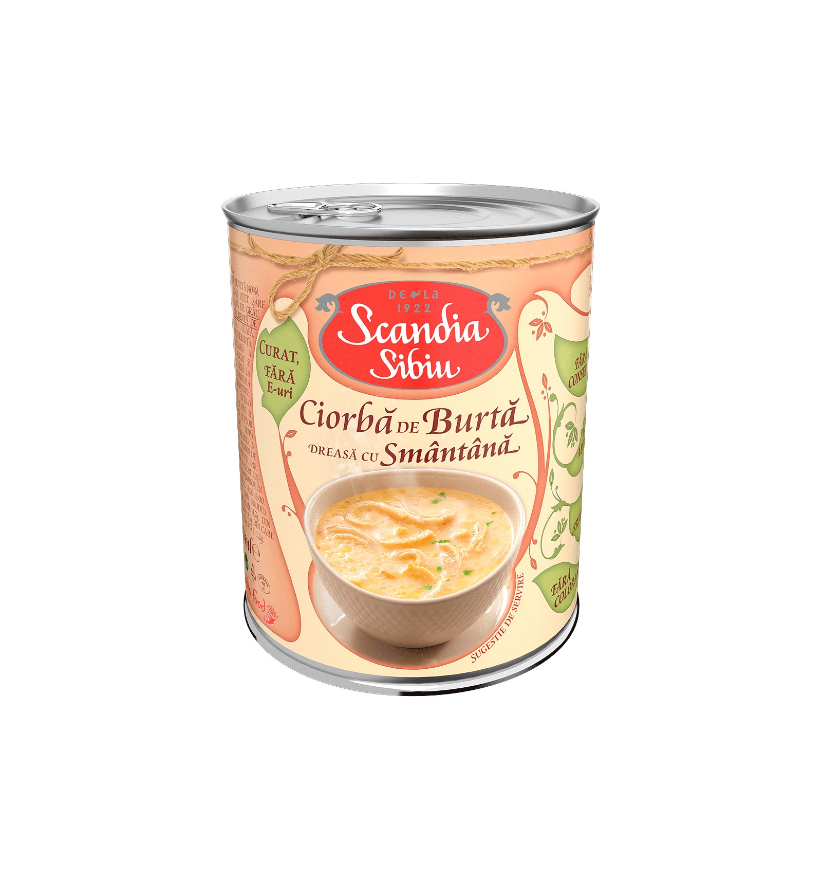 Ingredientes: panza de vaca (40%), caldo de huesos de vaca con crema (10%), pimientos morrones, sal yodada, almidón de maíz, harina de trigo blanca, vinagre, yema de huevo, zanahorias, apio, aceite vegetal no hidrogenado de girasol, cebolla, especias.