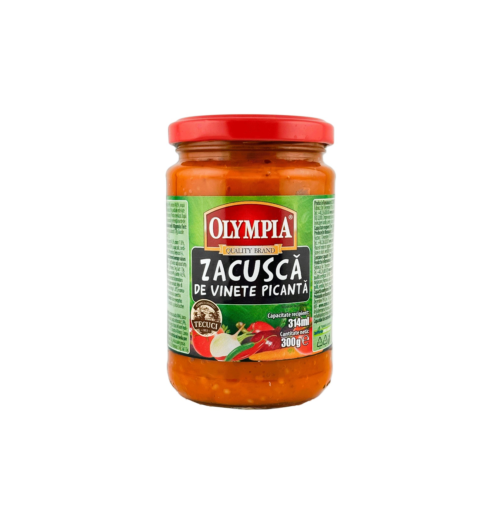 Ingredientes: berenjenas asadas (49%), zanahorias, cebolla, pimientos, aceite vegetal de girasol, pasta de tomate, pasta de pimiento picante (0.97%), azúcar, sal, especias.