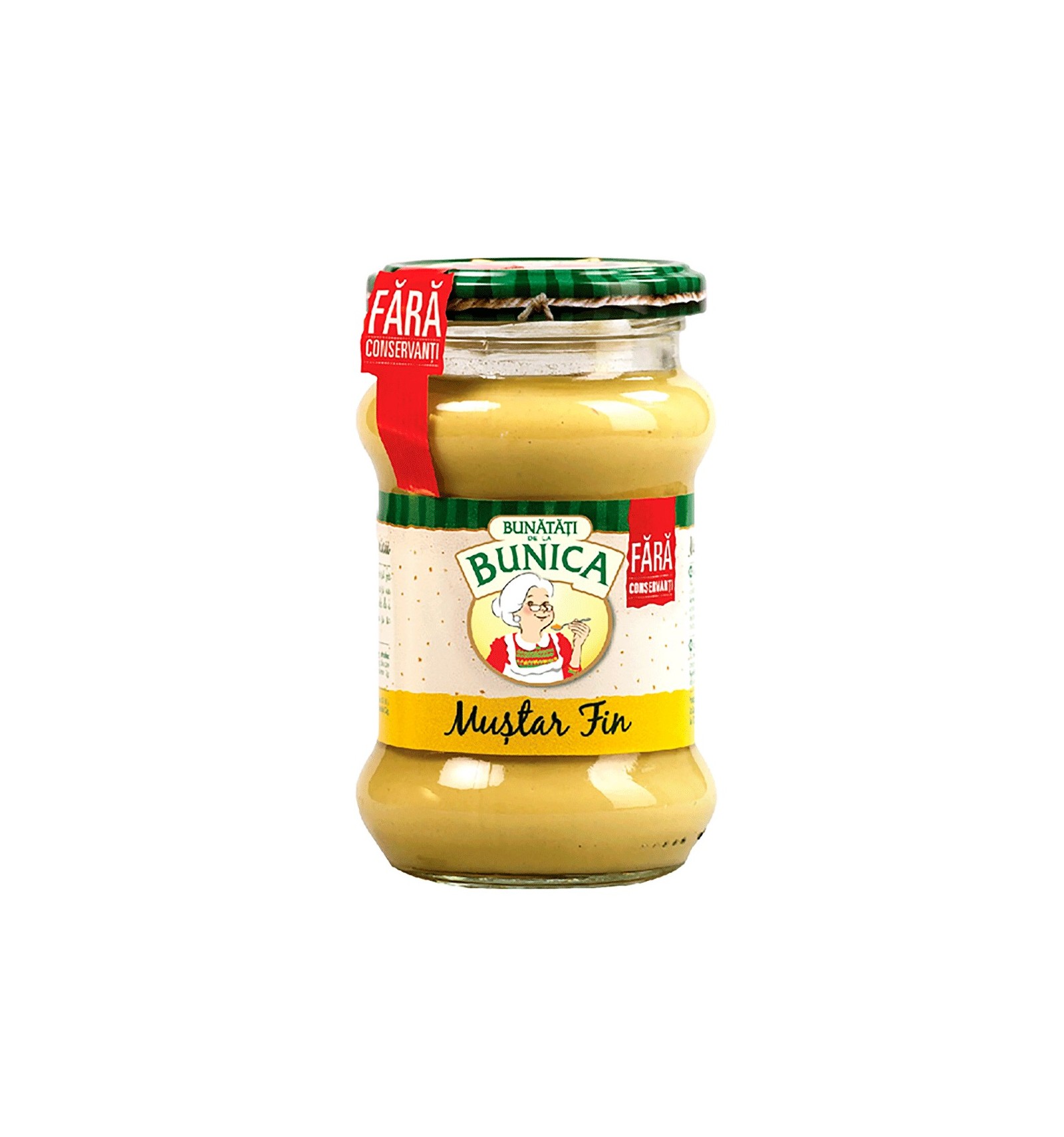 Ingredientes: agua, granos de MOSTAZA 18% (de origen de la UE y fuera de la UE), vinagre de alcohol, azúcar, sal, especias, colorante (beta-caroteno).
