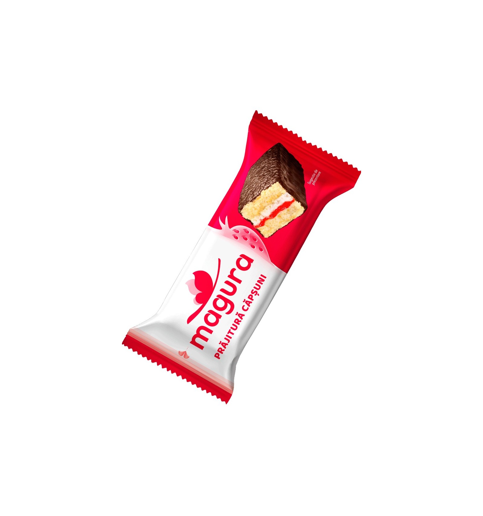 Ingredientes: azúcar, harina de trigo, grasas vegetales (aceite de palma), grasas vegetales (aceite de karité, aceite de palma, aceite de palma parcialmente hidrogenado), relleno de fresas 9% [puré de fresas 3,1%, jarabe de glucosa, azúcar, humectantes (sorbitol, glicerina), agua, agente gelificante (pectina), aroma, ácido (ácido cítrico), conservante (sorbato de potasio), colorante (antocianinas)], jarabe de glucosa, cacao en polvo reducido en grasa (5,3%), huevos, jarabe de glucosa-fructosa, humectantes (sorbitol, glicerina), leche en polvo (de leche), alcohol etílico refinado de origen agrícola 1%, leche en polvo desnatada, agentes leudantes (difosfato disódico, bicarbonato de sodio), emulgentes (ésteres poliglicéricos de ácidos grasos, lecitina de soja, polirricinoleato de poliglicerina), polvo de yogur (de leche) 0,1%, sal, aromas, ácido (ácido cítrico), conservante (sorbato de potasio). Puede contener trazas de cacahuetes y frutos secos.