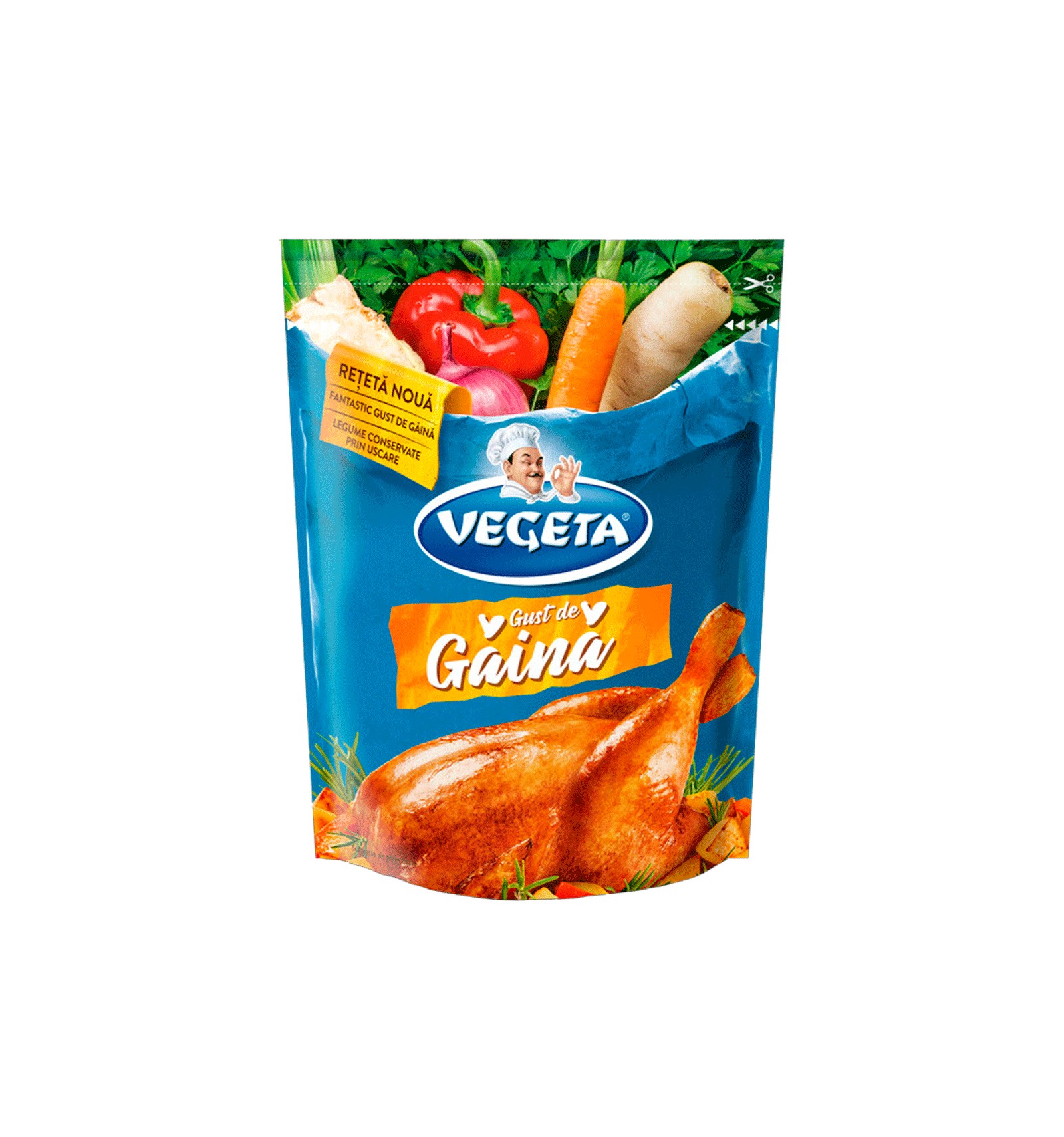 Ingrediente: sal yodada, potenciadores de sabor (glutamato monosódico, inosinado disódico), azúcar, verduras deshidratadas 8.7% (zanahoria, pimiento, chirivía, apio, cebolla, hojas de perejil), aroma de carne de pollo, especias, extracto de carne de pollo deshidratada 0.4%, colorante (riboflavina).