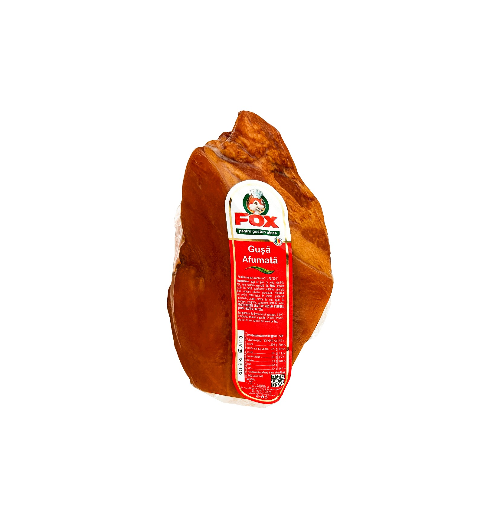 Ingredientes: papada de cerdo con corteza (procedencia UE); agua; sal; proteína vegetal de soja no modificada genéticamente; almidón; proteína animal de cerdo; estabilizantes: di-trifosfatos; fibras vegetales; azúcares: dextrosa; antioxidante: eritorbato de sodio; potenciador de sabor: glutamato monosódico; aromas, aroma de humo; agente espesante: carragenina; conservante: nitrito de sodio. Puede contener trazas de: mostaza, apio, gluten, lactosa, huevo.