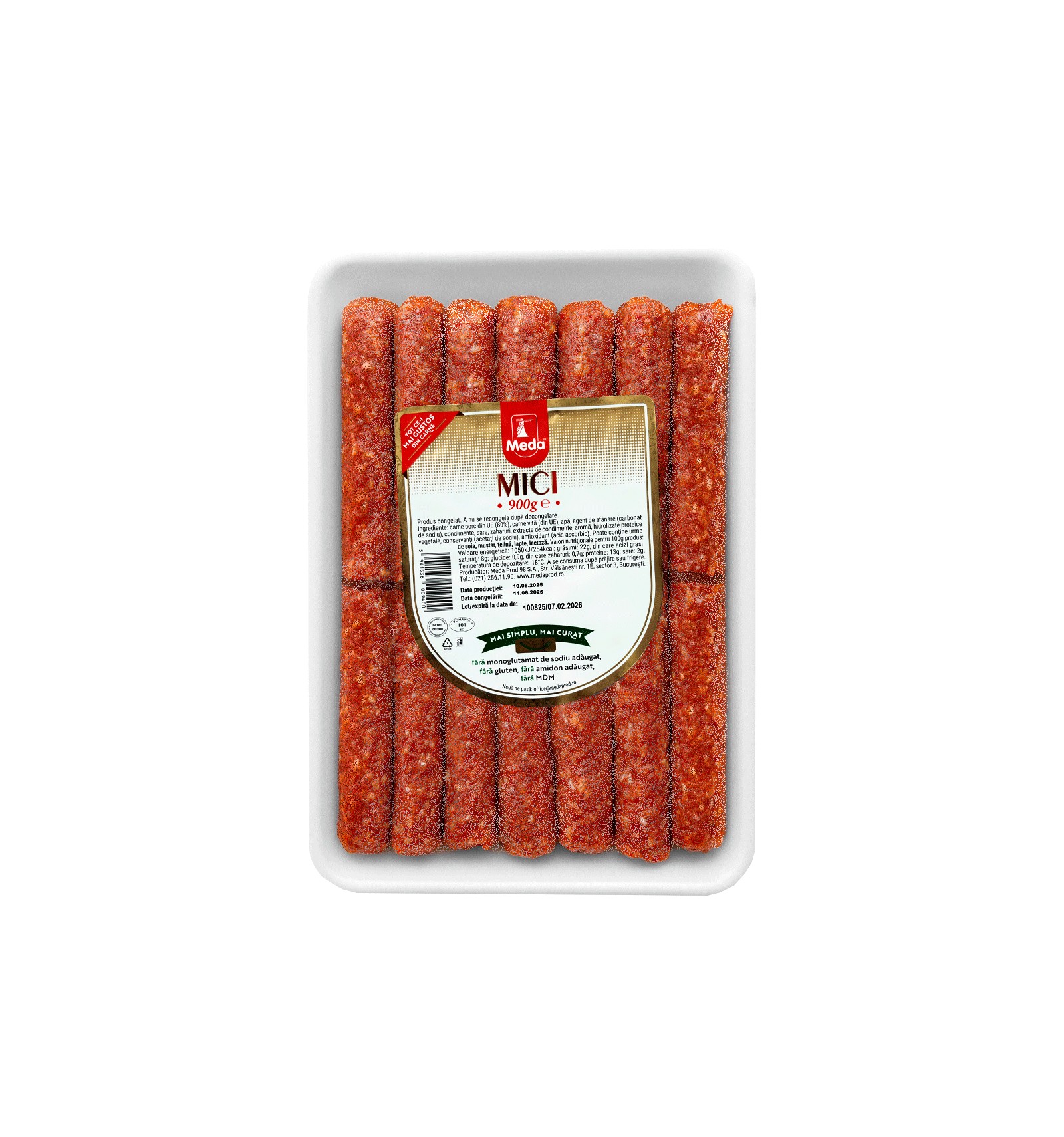 Ingredientes: Carne de cerdo (de la UE), carne de res (de la UE), agua, agente leudante (carbonato de sodio), condimentos, sal, dextrosa, extractos de condimentos, aroma, hidrolizados proteicos vegetales, conservantes (acetatos de sodio), antioxidante (ácido ascórbico). Puede contener trazas de soya, mostaza, apio, leche, lactosa.