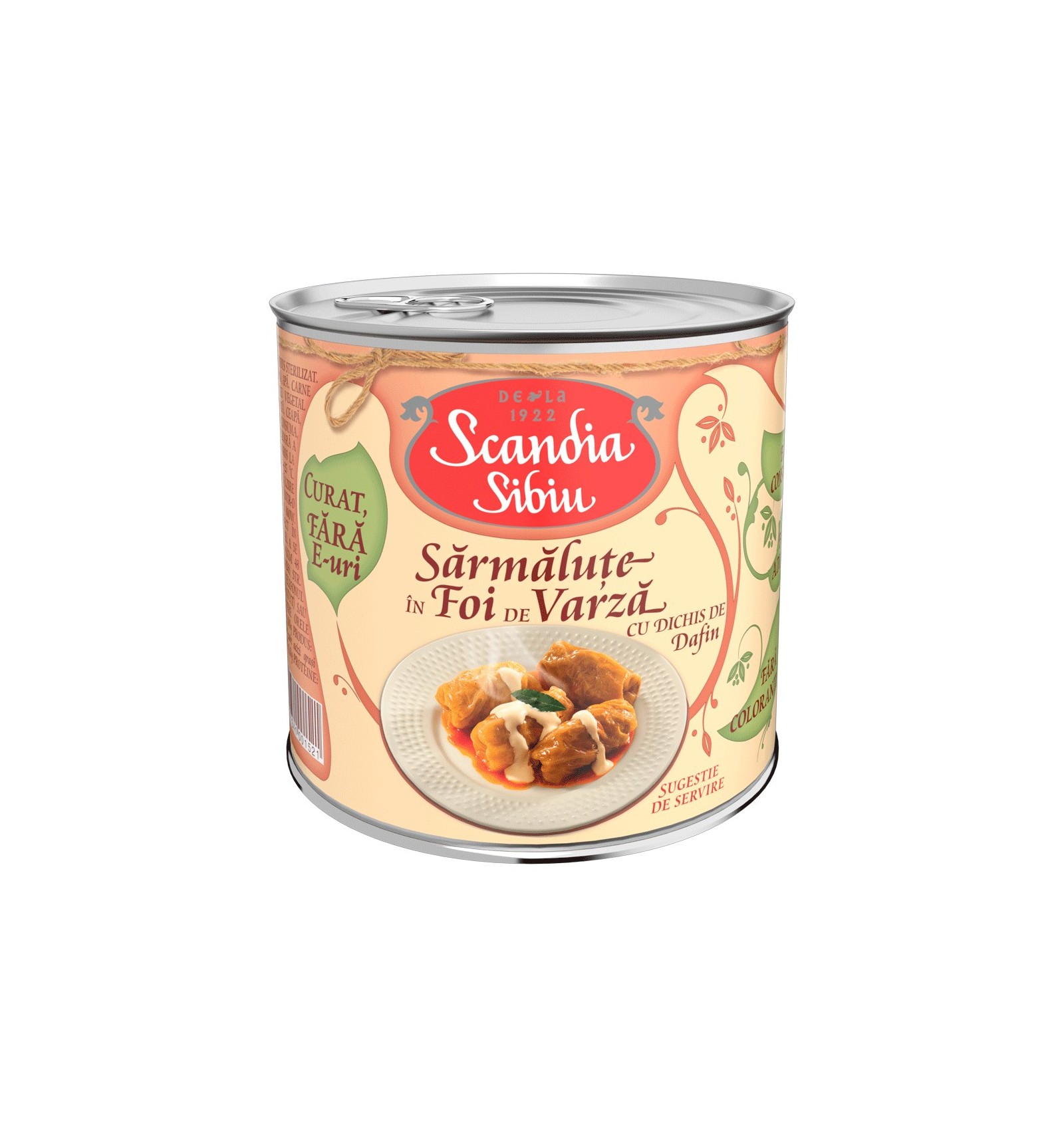 Ingredientes: col blanca 45%, carne de cerdo 29%, agua, carne de vaca 6%, pasta de tomate, aceite de girasol no hidrogenado, sal yodada, cebolla, tomillo, hojas de laurel 0.01%.