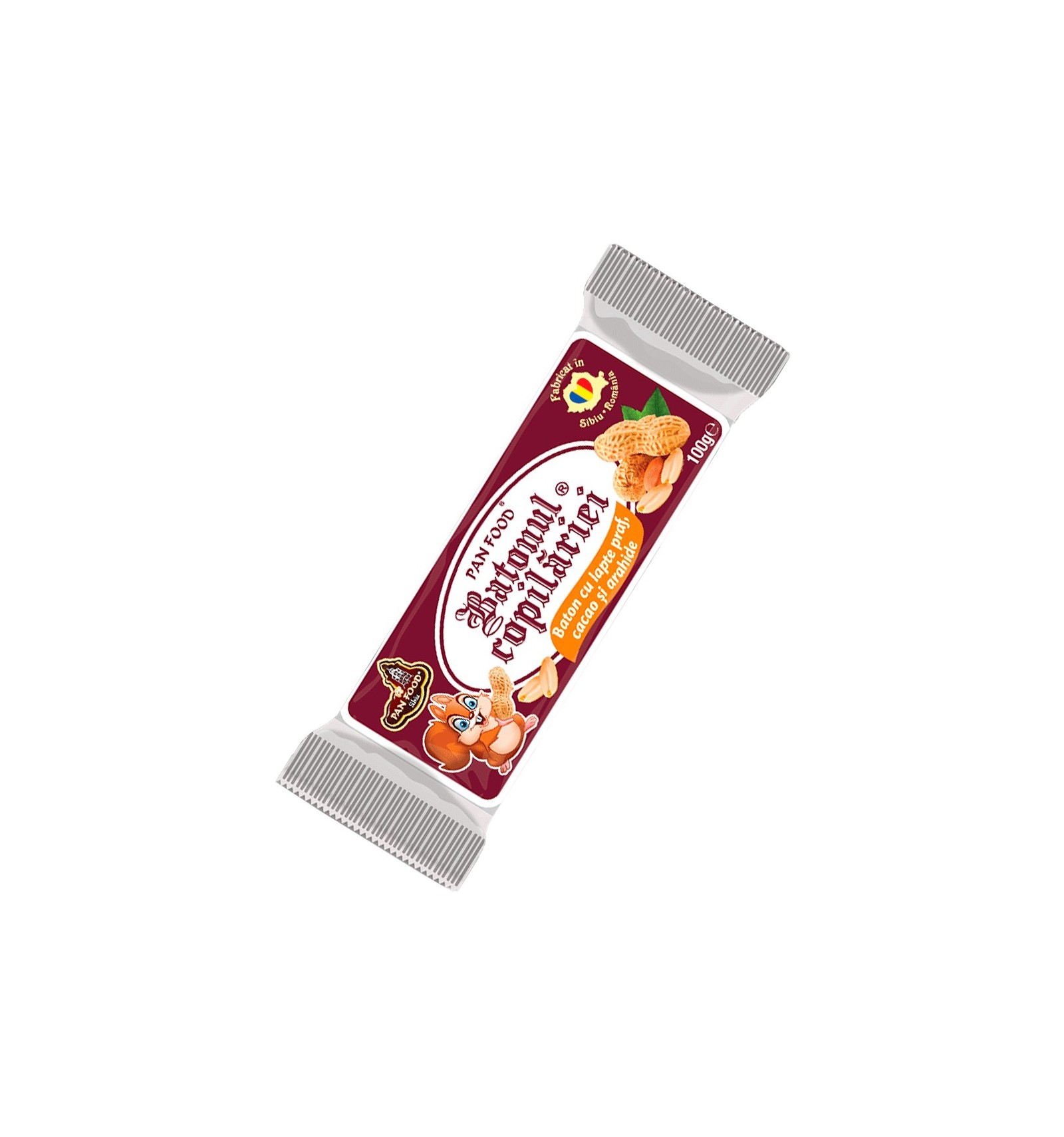 Ingredientes: Azúcar, leche en polvo 14%, suero en polvo (contiene lactosa), grasas vegetales de palma, obleas 8% (harina blanca de trigo, agentes de fermentación: bicarbonato de amonio, bicarbonato de sodio; grasa vegetal de palma, sal, emulsionante: lecitina de soja), cacahuetes 7%, jarabe de glucosa, dextrosa, agua, cacao 3%, aroma, conservante: sorbato de potasio. Puede contener trazas de gluten.