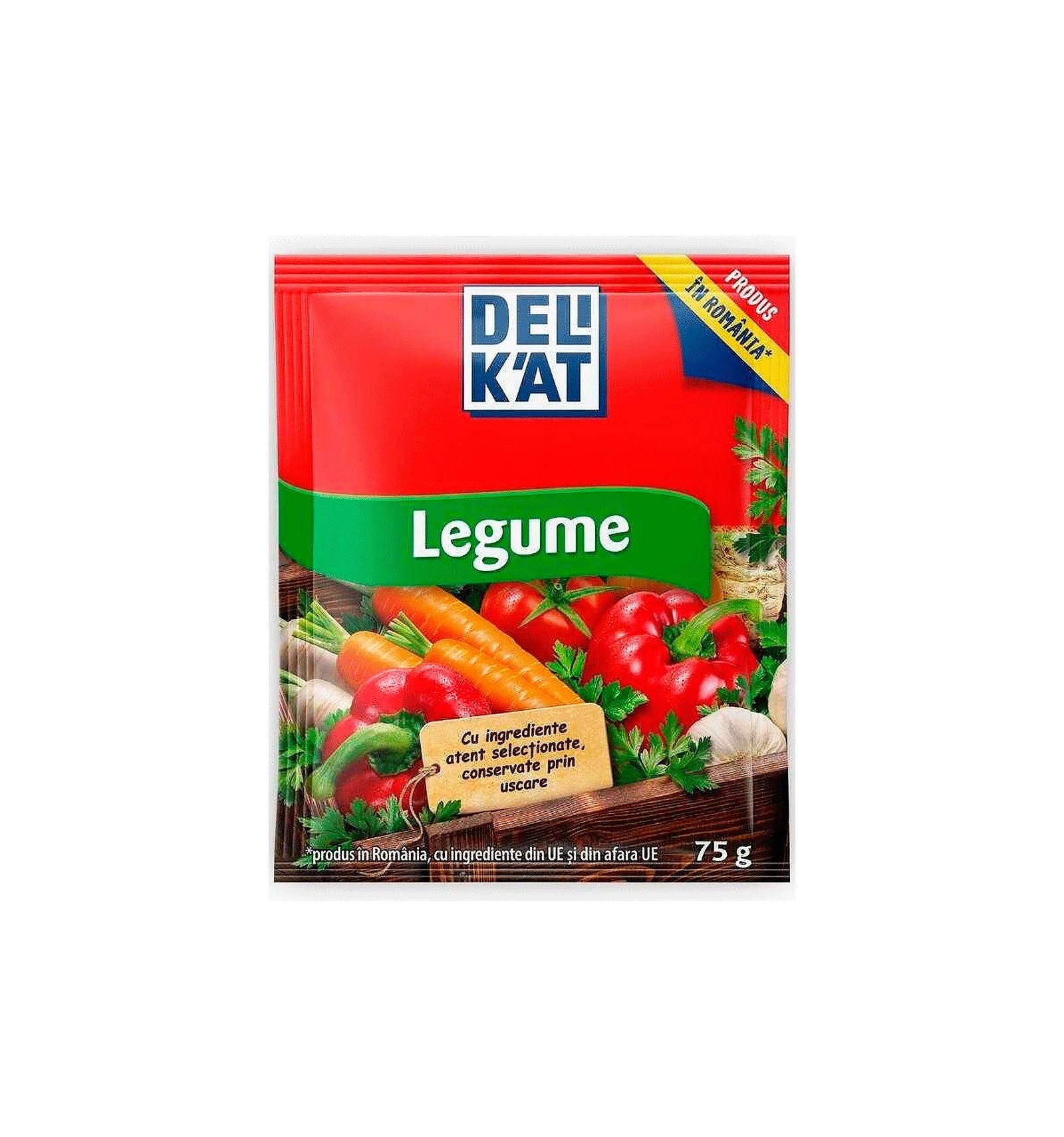 Ingredientes: sal yodada, azúcar, potenciadores de sabor (glutamato monosódico, inosinato de sodio, guanilato de sodio), zanahoria (6.1%), chirivía (1.9%), perejil (0.7%), especias (ajo (0.3%), semillas de APIO (0.2%), cúrcuma, raíz de perejil), pimiento rojo (0.5%), grasa vegetal de palma, cebolla (0.4%), sal, aromas, puerro (0.1%), tomate en polvo (0.05%), colorante (riboflavina), extracto de levadura. Puede contener cereales que contienen GLUTEN, HUEVO, LECHE, MOSTAZA, SOJA.