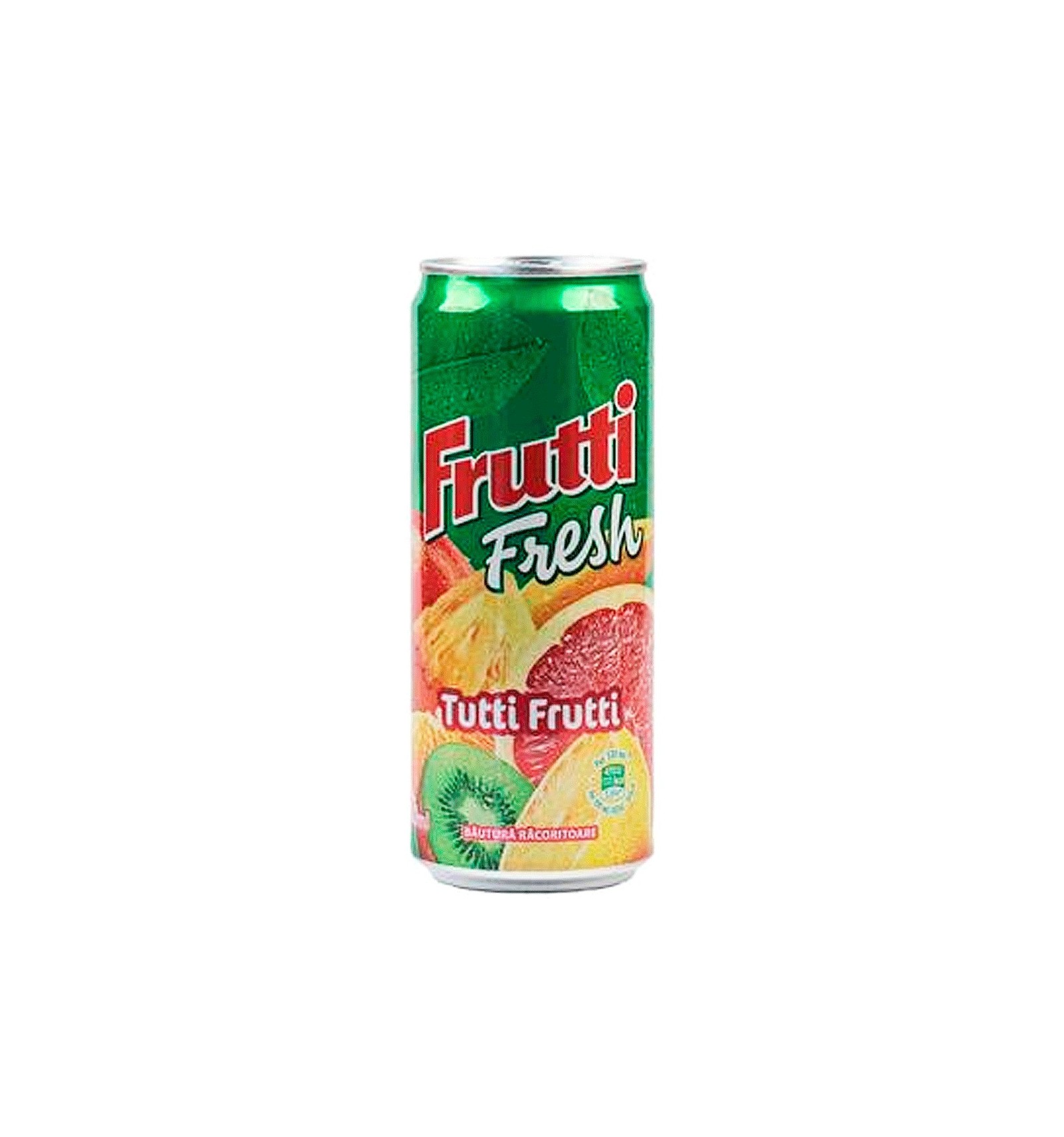 Ingredientes: Agua, azúcar, zumo de frutas a partir de concentrado 4% (manzanas, naranjas, limones, kiwis, plátanos, uvas, piñas, melocotones, pomelos, mangos), dióxido de carbono, acidulante ácido cítrico, estabilizantes polifosfato de sodio, goma arábiga y ésteres de resinas de madera, ácido ascórbico, aromas, conservantes benzoato de sodio y sorbato de potasio, colorante carotenos.