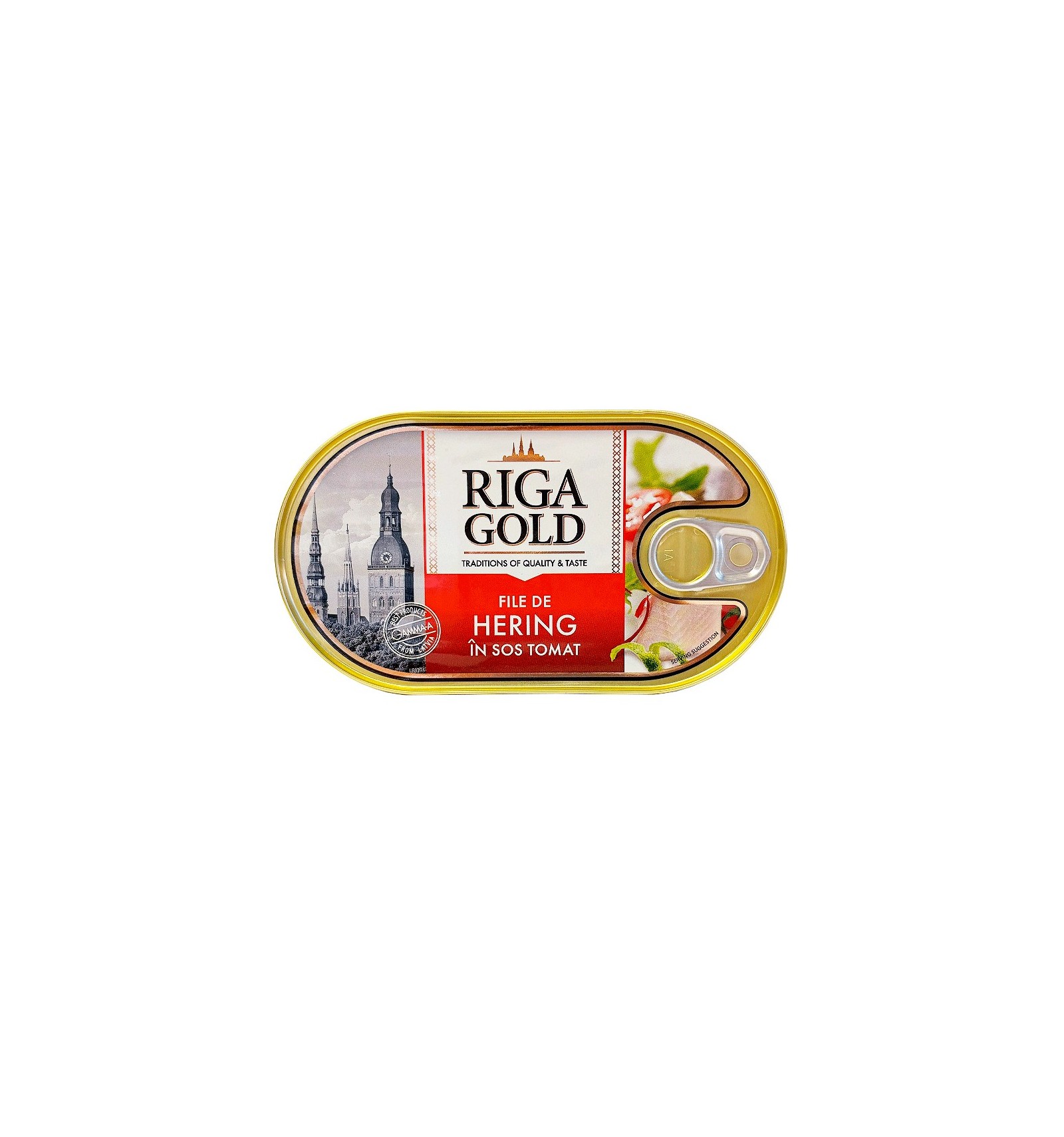 Ingredientes: filetes de arenque 60%, salsa de tomate 40% (pasta de tomate, agua, azúcar, aceite de colza, sal, cebolla, especias, acidificante: ácido acético, agente espesante: goma de guar). Alérgenos: contiene pescado. Puede contener trazas de gluten, mostaza, soja y leche.