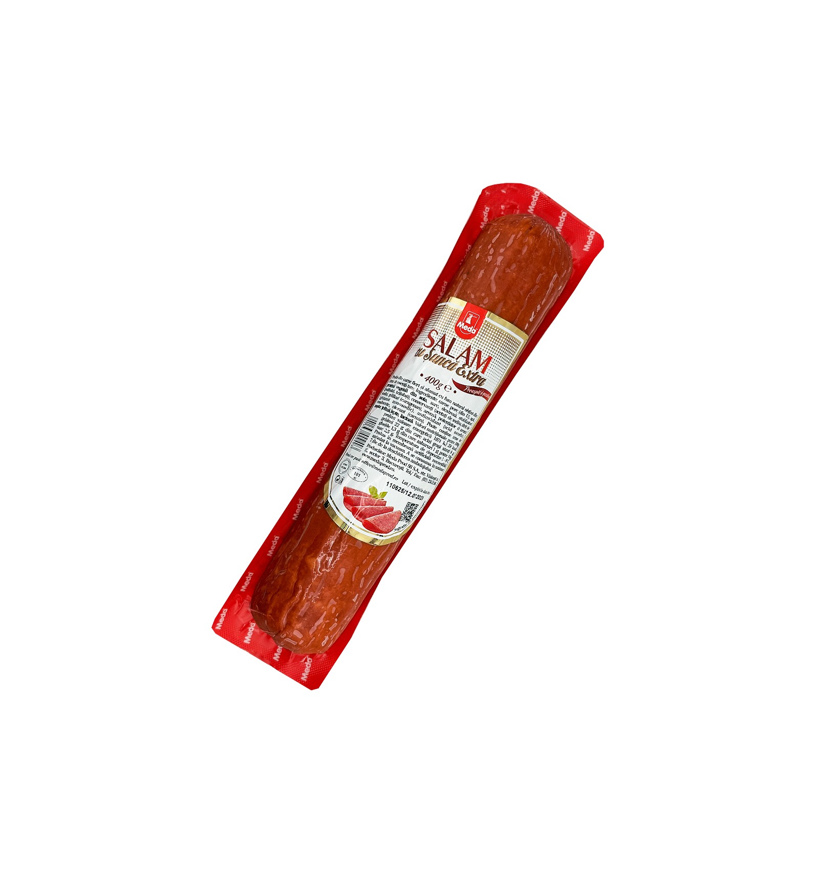 Ingredientes: carne de cerdo (de la UE), agua, PROTEINA VEGETAL DE SOJA, sal, dextrosa, estabilizadores (polifosfatos, trifosfatos), conservante (acetato sodico, nitrito so gelifiant (caragenan), sabor, potenciador de sabor (glutamato monosodico), antioxidante (ascorbato sodico), especias, colorante (carmin). Puede contener trazas de soja, mostaza, apio, leche, lactosa.