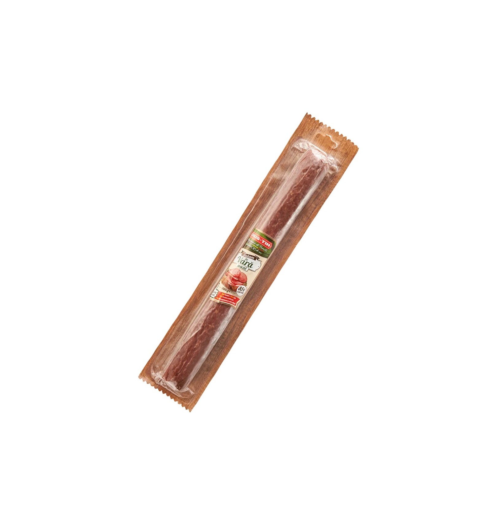 Ingrediente: carne de porc (80%), apă, carne de vită (5%), slănină, proteină animală de porc, condimente și extracte de condimente, sare, stabilizatori (difosfați), zaharoză, arome naturale, antioxidant (acid ascorbic), aromă de fum naturală, fibre vegetale, usturoi, colorant (carmine), conservant (nitrit de sodiu). Produsul poate conține urme de: muștar, lapte, lactoză.
