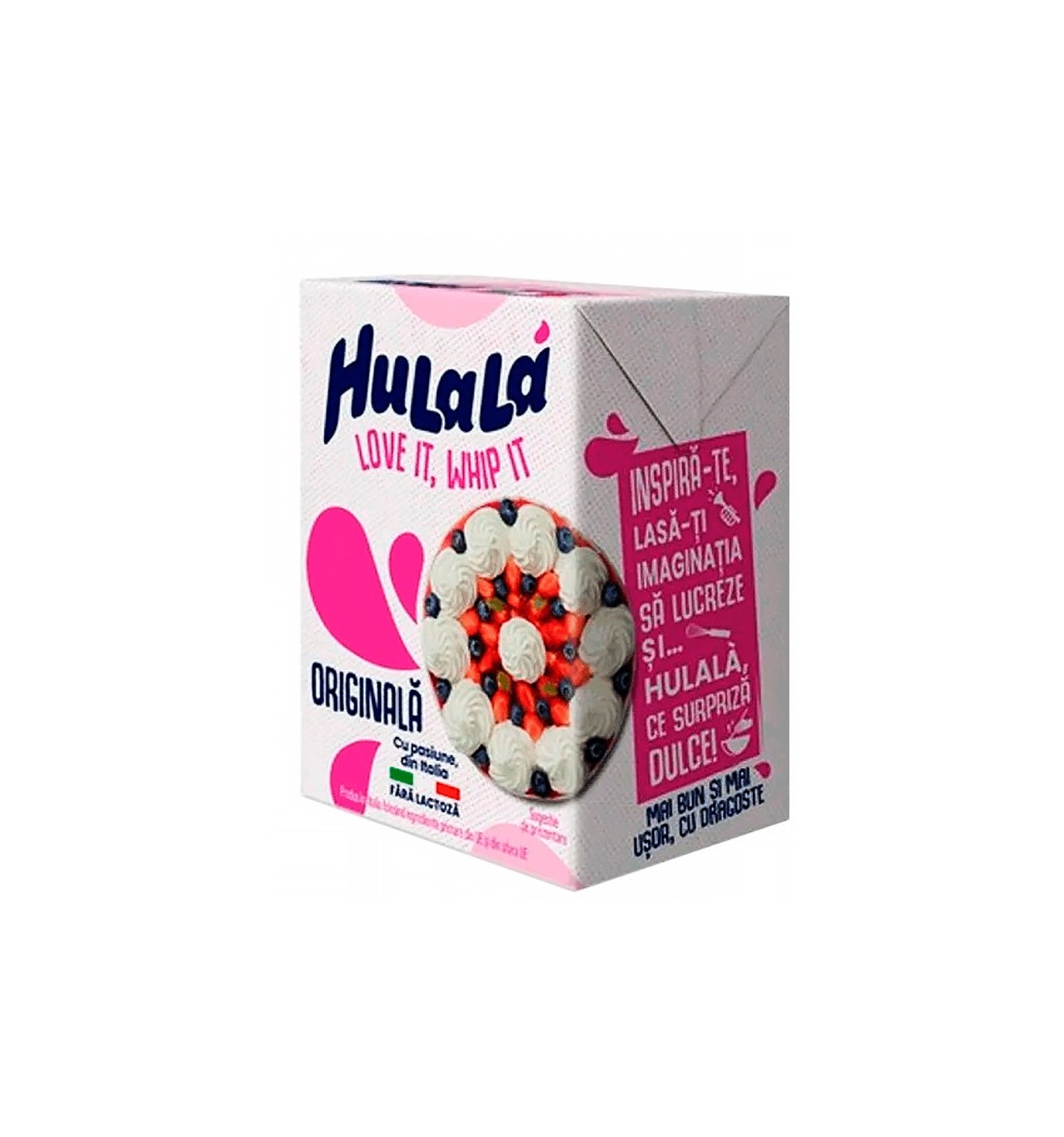 Ingrediente: Apa, grasimi si uleiuri vegetala total hidrogenata(25%), grasimi: samburi de palmier, uleiuri: floarea soarelui, zahar(9,8%), stabilizatori, sorbitoli, hidroxipropilceluloza, proteina din lapte, emulsifianti, stearoil-2-lactilit de sodiu, lecitine(soia), esteri ai acidului lactic mono si digliceridele acizilor grasi: sare, arome.