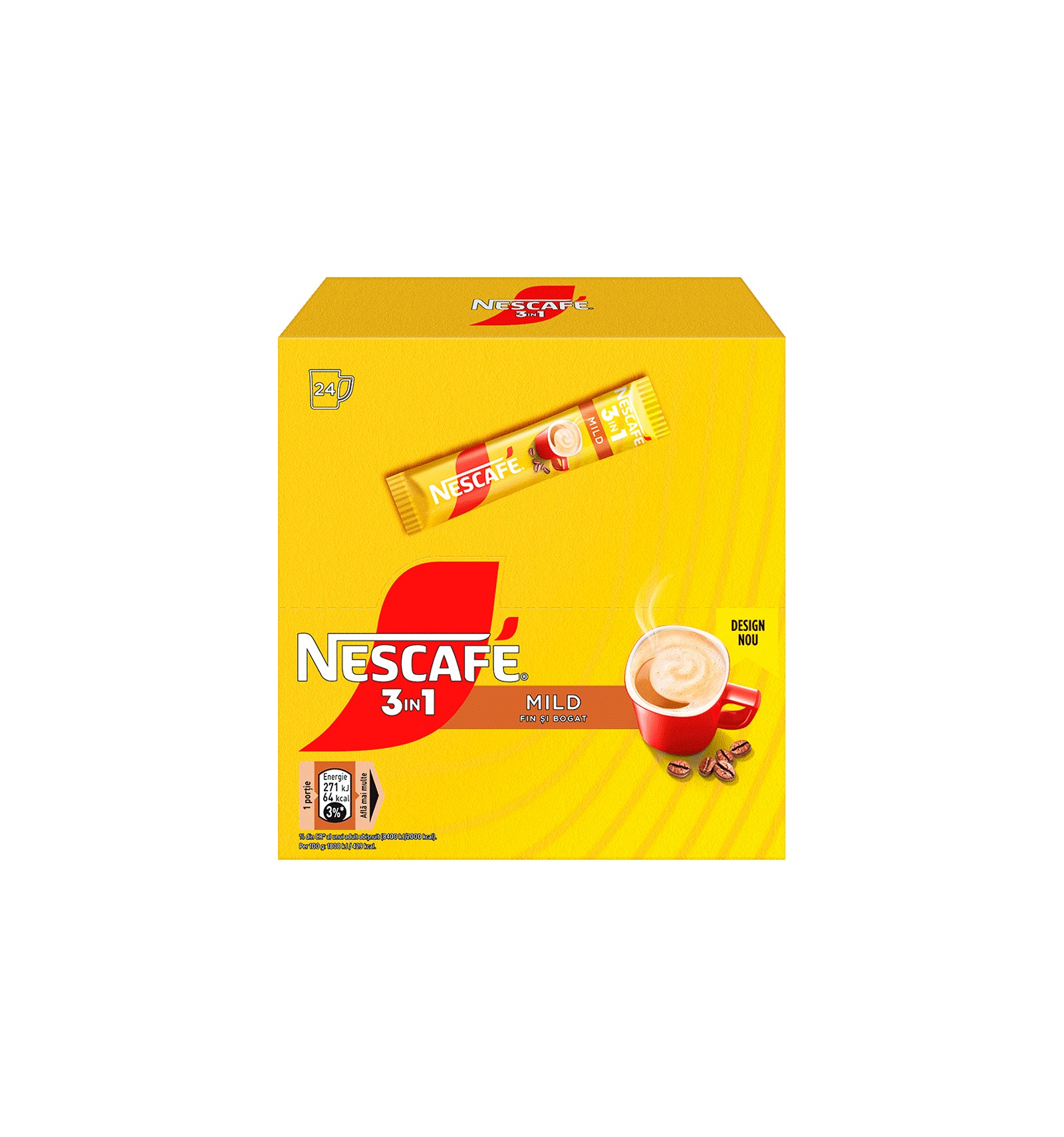 Ingrediente: Zahăr (54.1%), sirop de glucoză, ulei vegetal total hidrogenat din sâmburi de palmier, cafea instant (7.3%), sare, stabilizatori (fosfați de potasiu, citrati de sodiu, trifosfati, polifosfați), amidon, proteine din lapte (0.8%), emulgatori (mono- și digliceride ale acizilor grași, esteri ai acizilor mono- și diacetil tartric cu mono- și digliceridele acizilor grași), arome.