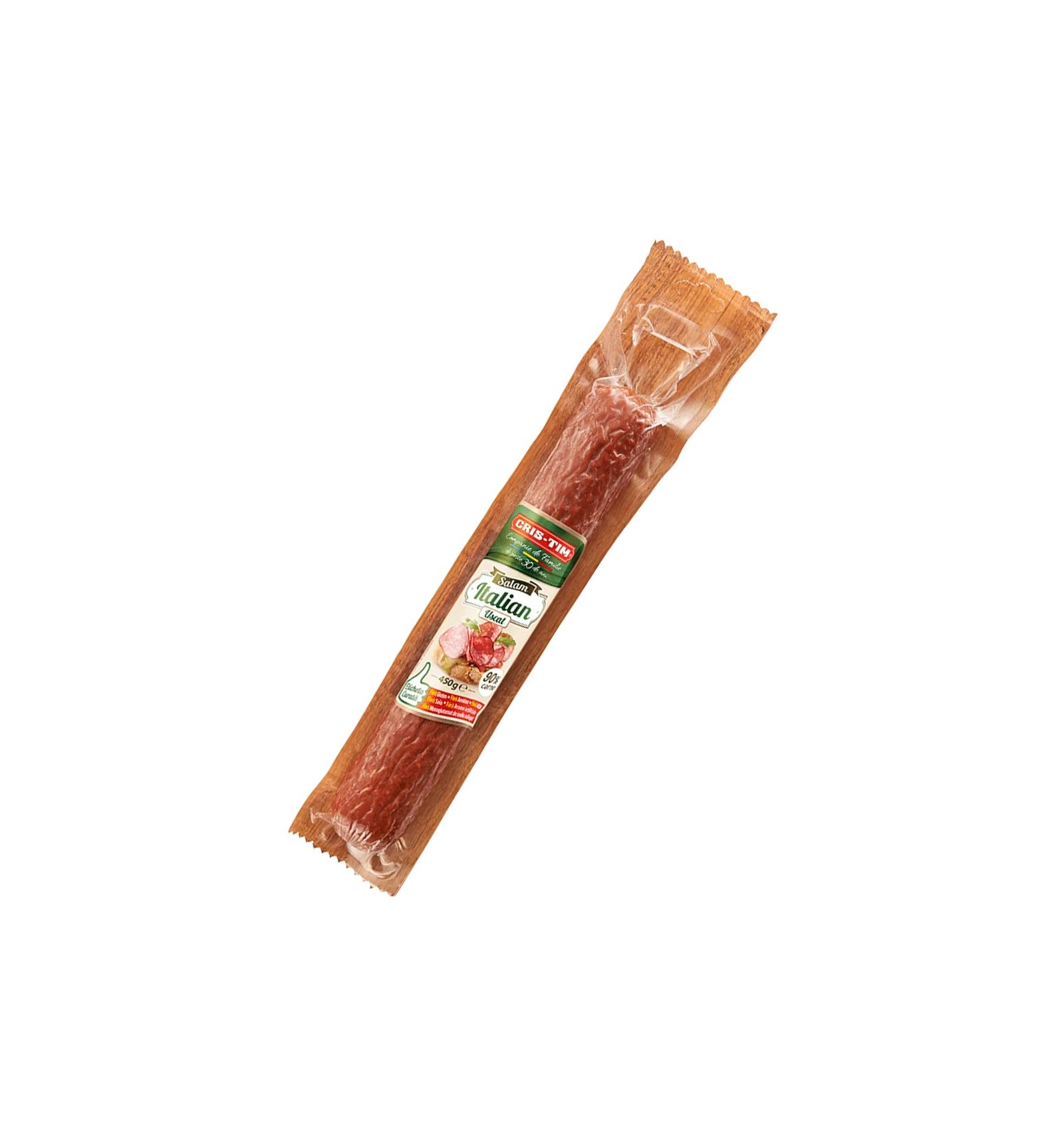Ingrediente: carne de porc (90%), apă, slănină, sare, proteină animală de porc, stabilizatori (trifosfați), dextroză, zer pulbere (lapte), arome naturale, antioxidant (ascorbat de sodiu), extracte de condimente, usturoi, piper, colorant (carmine), conservant (nitrit de sodiu). Produsul poate conține urme de: lactoză, muștar.