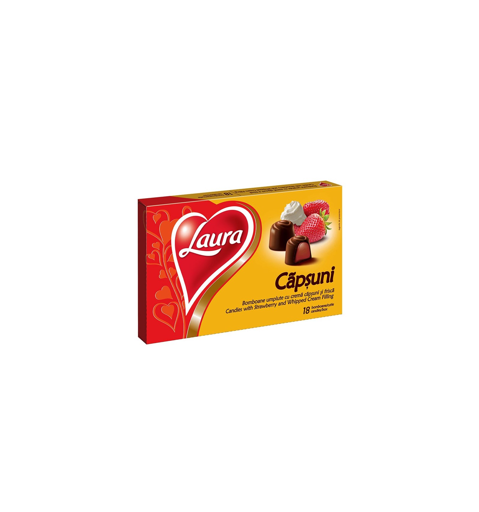 Ingrediente: zahăr, grăsimi vegetale (ulei de shea, ulei de palmier, ulei de palmier parțial hidrogenat), sirop de glucoză-fructoză, grăsimi vegetale (ulei de palmier, ulei de shea), sirop de glucoză, derivat de pudră de zer (din lapte), pudră de cacao cu conținut redus de grăsimi 4,1%, umectant (sirop de sorbitol), lapte praf degresat 2%, pudră de zer (din lapte), emulgatori (lecitină de soia, poliglicerol poliricinoleat), stabilizator (invertază), pudră de căpșuni 0,1% (concentrat de piure de căpșuni, maltodextrină), pudră de cremă (din lapte) 0,1%, acidifiant (acid citric), colorant (carmin), arome. Poate conține urme de arahide, nuci, gluten, ouă.
