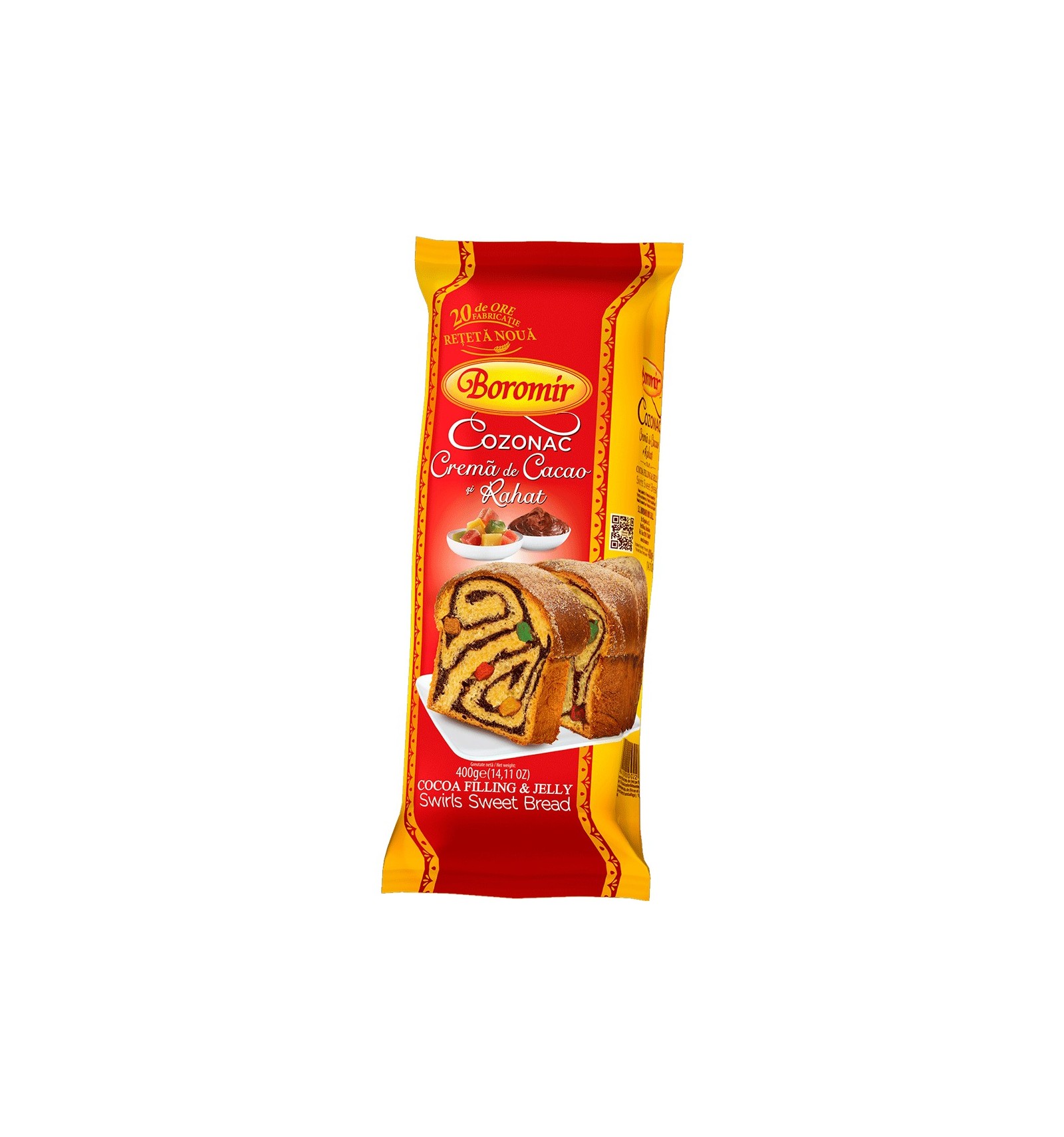Ingrediente: făină albă de grâu, rahat 17% (zahăr, amidon de porumb, apă, acidifiant: acid citric, dextroză, coloranţi alimentari: extract de morcovi, brilliant blue FCF, arome), zahăr, drojdie naturală (făină albă de grâu, apă), uleiuri vegetale (palmier, floarea soarelui, rapiţă), albuş de ou, gălbenuș de ou, apă, sirop de zahăr invertit, unt, emulsifianți: mono și digliceride ale acizilor grași și lecitină de soia, lapte praf, cacao pudră degresată 1%, alcool etilic, drojdie, sare iodată, arome. Produsul poate conţine urme de nucă.