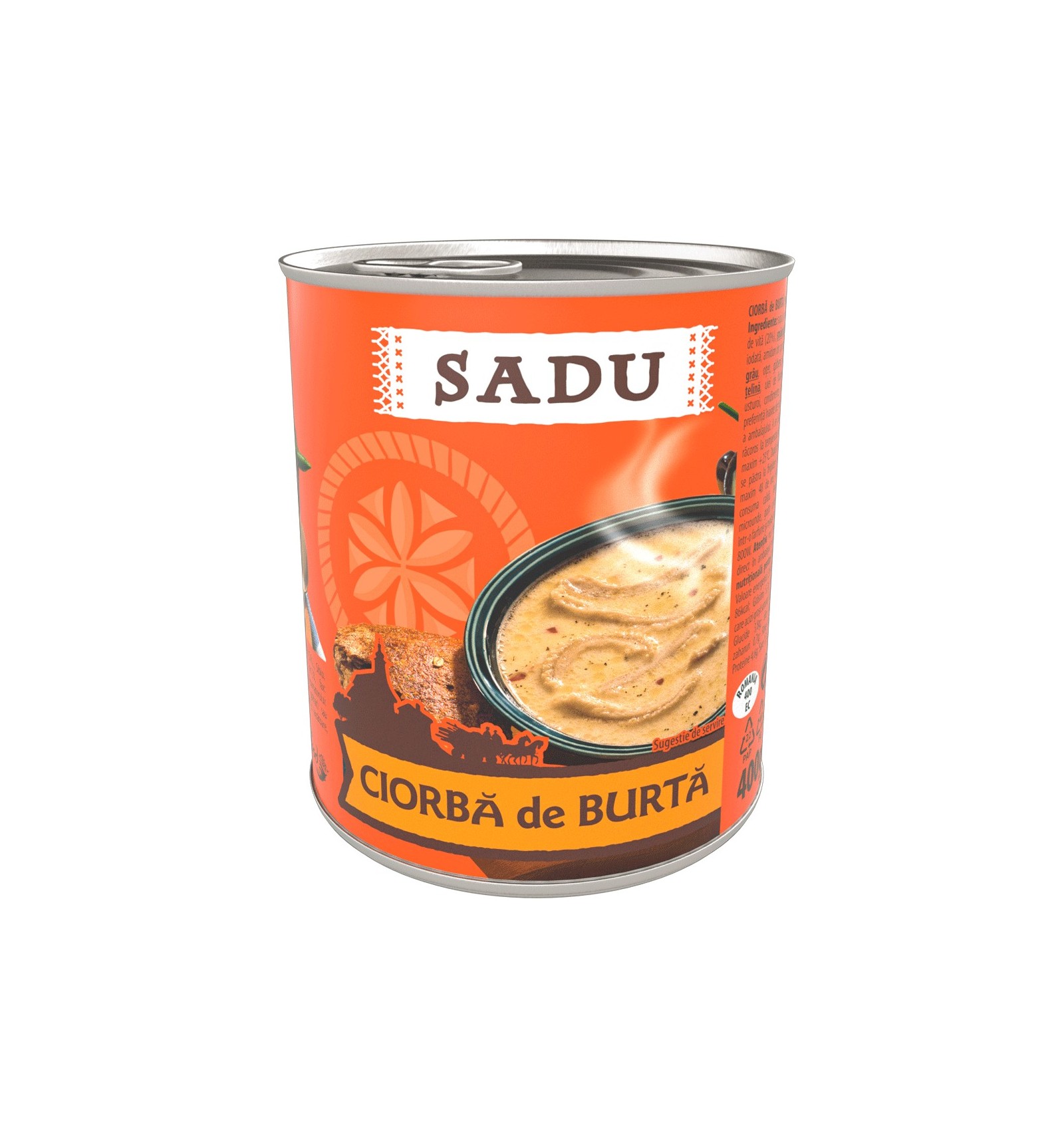 Ingrediente: supă de oase de vită, burtă de vită (20%), smântână, gogoșari, sare iodata, amidon din porumb, făină albă din grâu, oțet, gălbenuș de ou, morcovi, țelină, ulei vegetal nehidrogenat de floarea-soarelui, ceapă, usturoi, condimente.