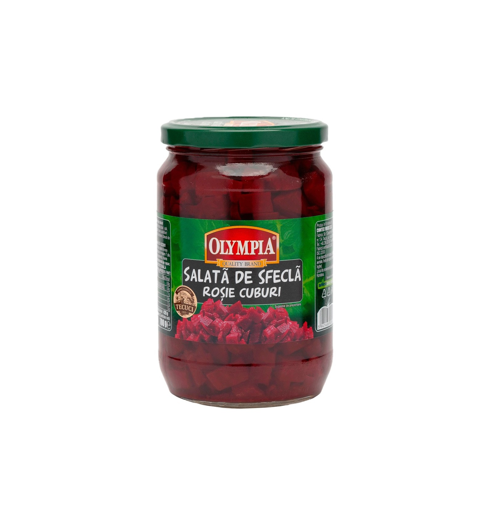Ingrediente: sfecla rosie, apa, zahar, sare, acidifiant (acid citric), agent de intarire (clorura de calciu).