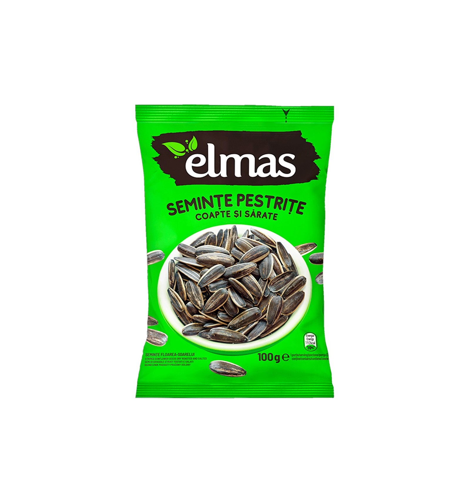 Ingrediente: Seminte pestrite de floarea-soarelui, sare de mare iodata 3% (sare de mare, iodura de potasiu), amidon din cartof.