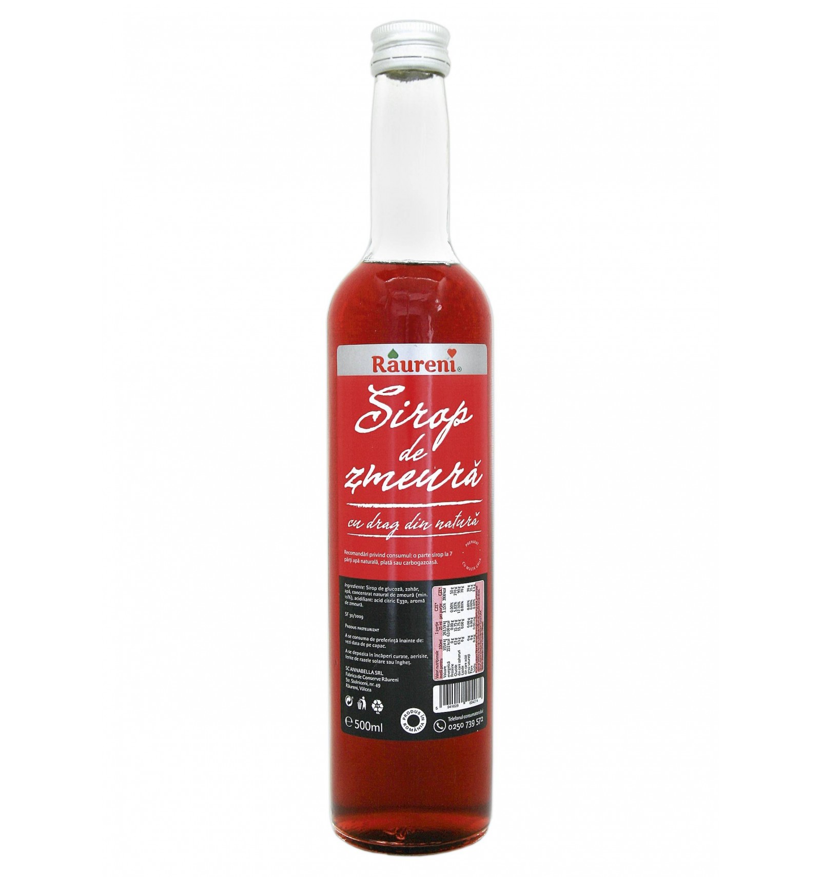 Ingrediente: Sirop de glucoză, zahăr, apă, concentrat natural de zmeură (min. 10%), acidifiant: acid citric (E330), aromă de zmeură.
