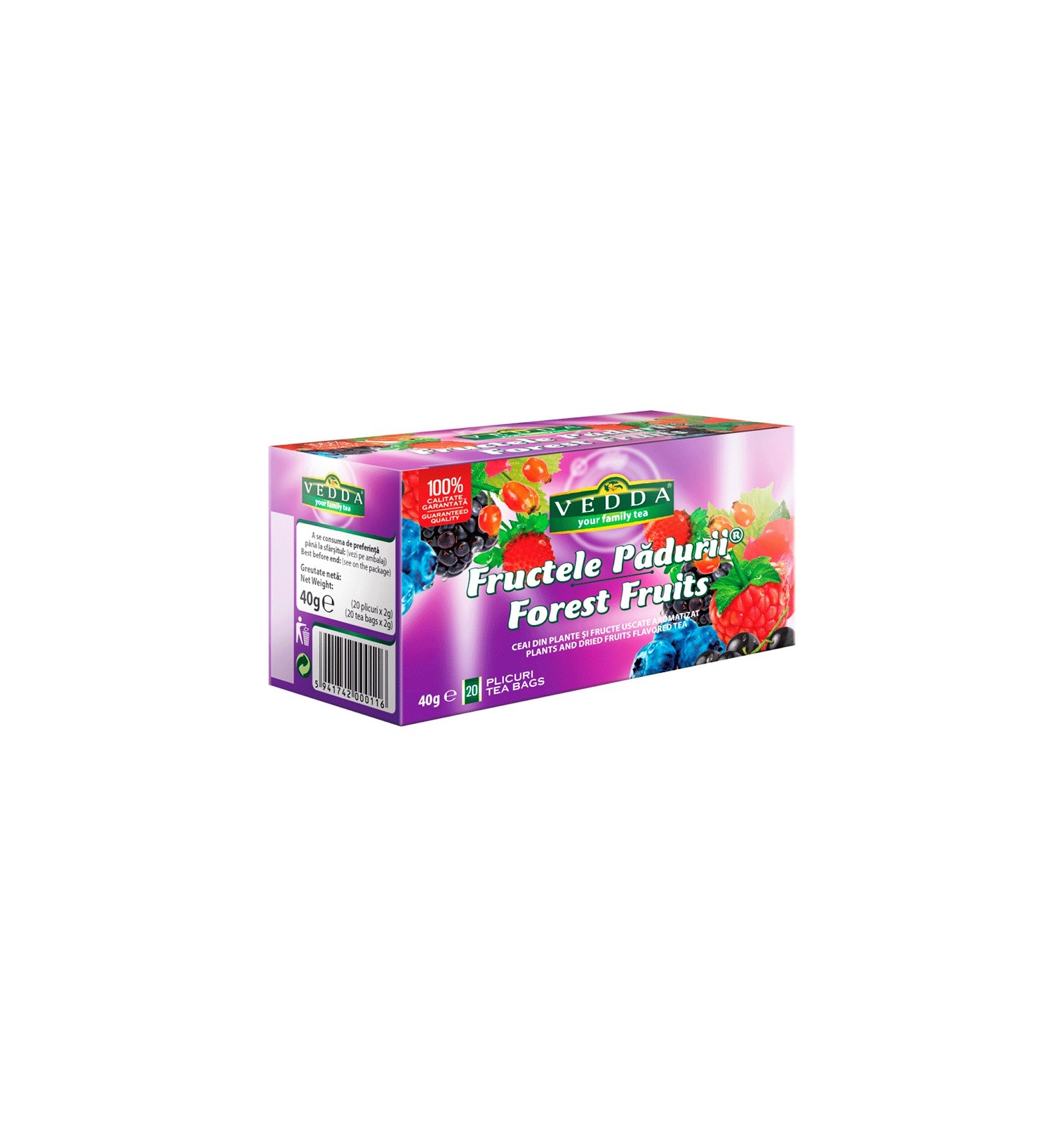 Ingrediente: flori de hibiscus sabdariffa, alte plante in proportie variabila: menta, musetel, frunze de alun; macese, fructe de paducel, fructe de porumbar, aroma de fructe de padure.