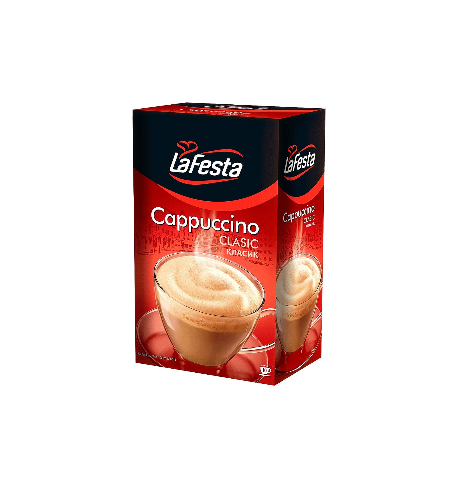 Ingrediente: Zahăr, sirop de glucoză, grăsime vegetală total hidrogenată de cocos, 7.5% cafea solubilă, lapte praf degresat, stabilizator: fosfaţi de potasiu, arome. Alergeni: lapte și produse derivate (inclusiv lactoză).