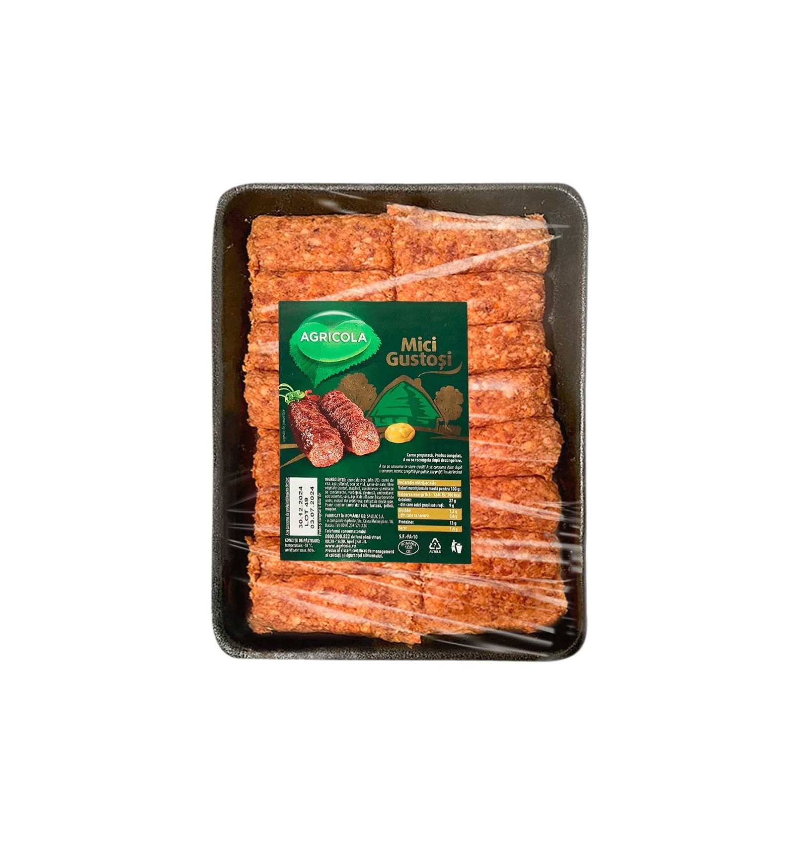 INGREDIENTE: carne de porc (din UE), carne de vitä, apa, släninà, seu de vita carne de oaie, fibre vegetale , cartof mazare, condimente si extracte de condimente, verdeturi, dextroza, antioxidant: acid ascorbic, sare, agent de afanate bicarbonat de sodiu, extract din ardei rosu, extract de sfeda rosie. Poate contine urme de: soia, lactozá, telina mustar.
