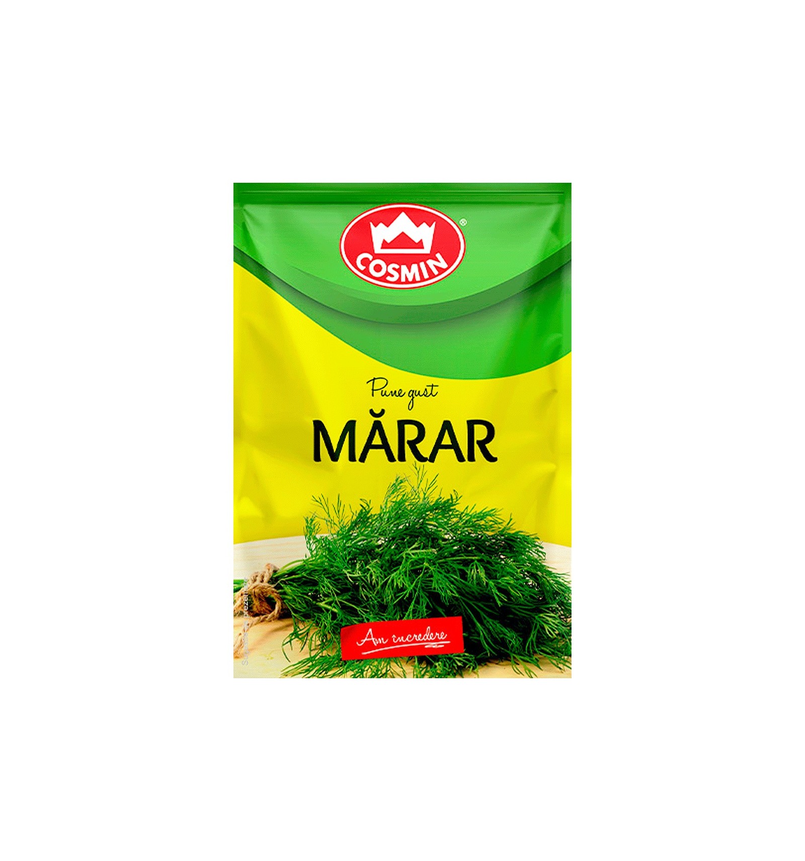 Ingrediente: frunze de mărar deshidratate și mărunțite. Poate conţine urme de: țelină, muștar, susan.