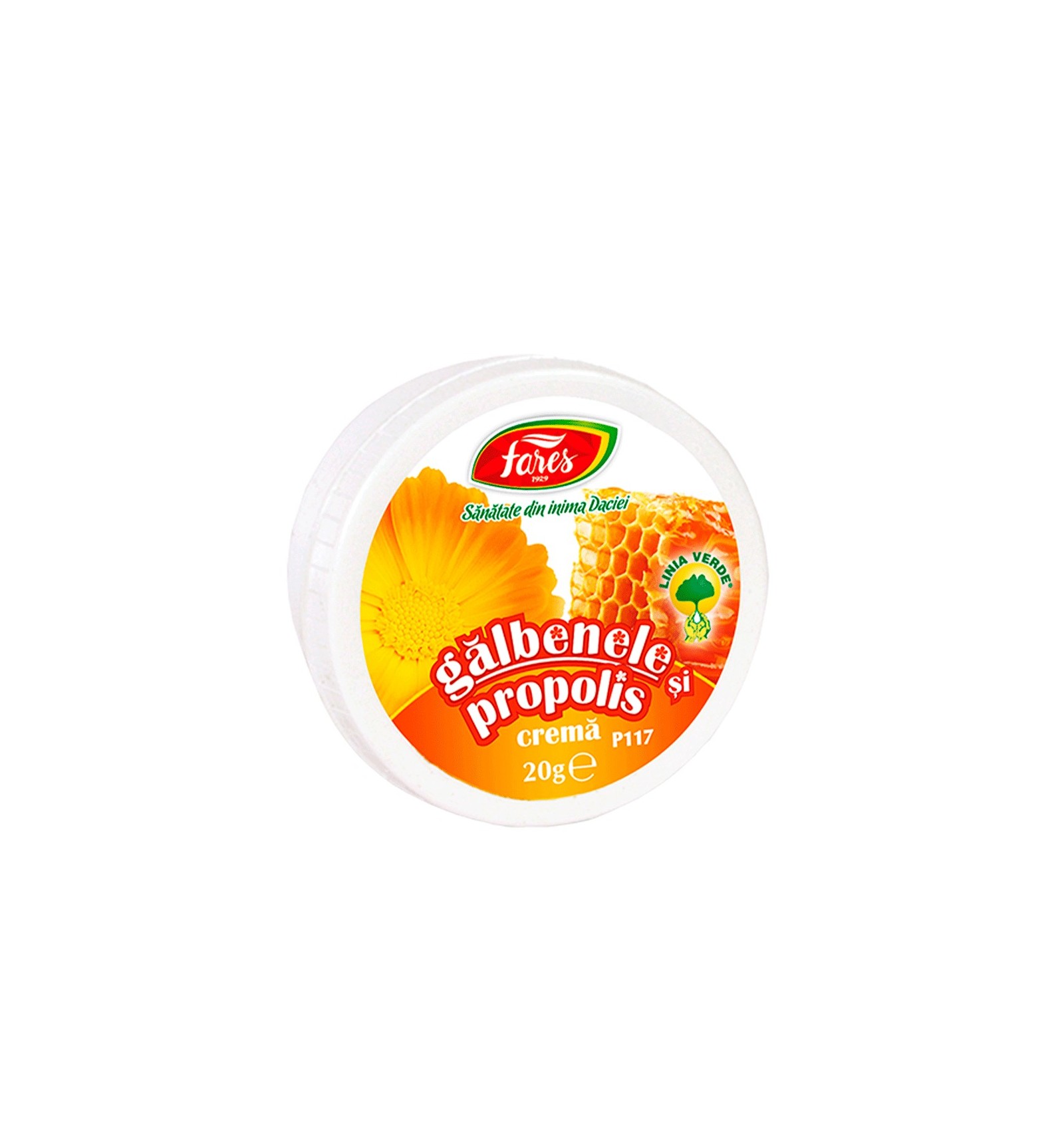 Ingrediente:Vaselină 57%, extract uleios de propolis 25%, extract de flori de gălbenele (Calendulae flos) 8%, lanolină 5%, stearină 3%, ceară de albine 2%.
