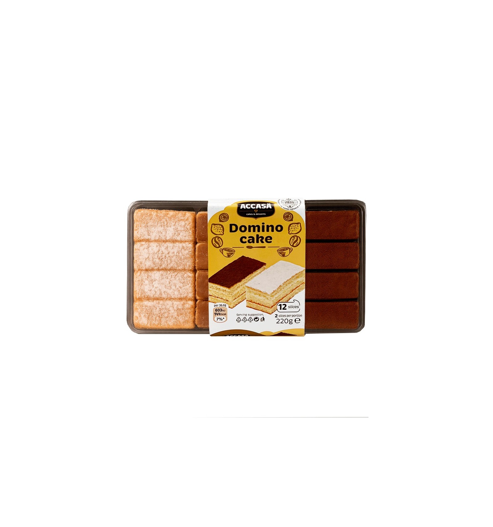 Ingrediente: zahăr, OU proaspăt, grăsimi vegetale nehidrogenate (ulei de palmier, floarea-soarelui, rapiță), făină de GRÂU, sirop de glucoză-fructoză, emulgatori: monogliceride și digliceride ale acizilor grași, lecitină de SOIA; suc de lămâie 1%, cafea solubilă 0,45%, cacao pudră, agenți de afânare: E450, E500, E170; sare iodată, acidifiant: acid citric; conservant: sorbat de potasiu; arome. Poate conține urme de arahide, lapte.
