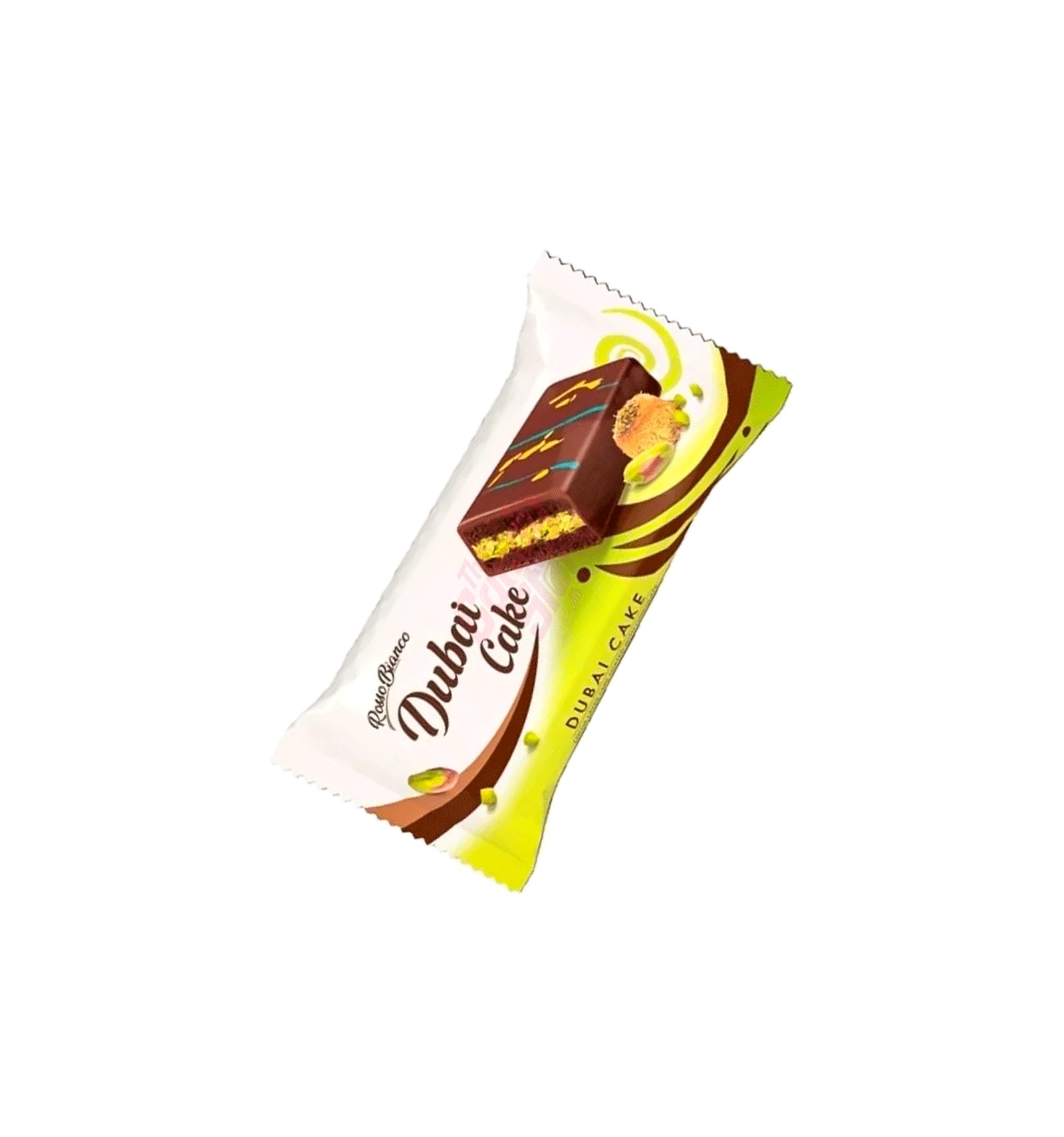 Ingrediente: zahăr, făină de grâu (conține gluten), ulei vegetal (palmier, bumbac), ou (ovoprodus), zer desmineralizat pudră (produs lactat), sirop de glucoză, cacao pudră, lapte integral pudră (produs lactat), amidon de grâu (conține gluten), umectanți (sorbitol, glicerină), fistic, emulgatori (gel emulgator, lecitină de floarea-soarelui/lecitină de soia, poliricinoleat de poliglicerol), agenți de afânare (pirofosfat acid de sodiu, bicarbonat de sodiu), sare, arome (lapte, vanilie, fistic), conservanți (sorbat de potasiu), corector de aciditate (acid citric), coloranți (colorant natural verde, luteină), enzimă. Conține produse lactate, gluten, produse din soia și produse din ouă. Poate conține arahide, alune și migdale.