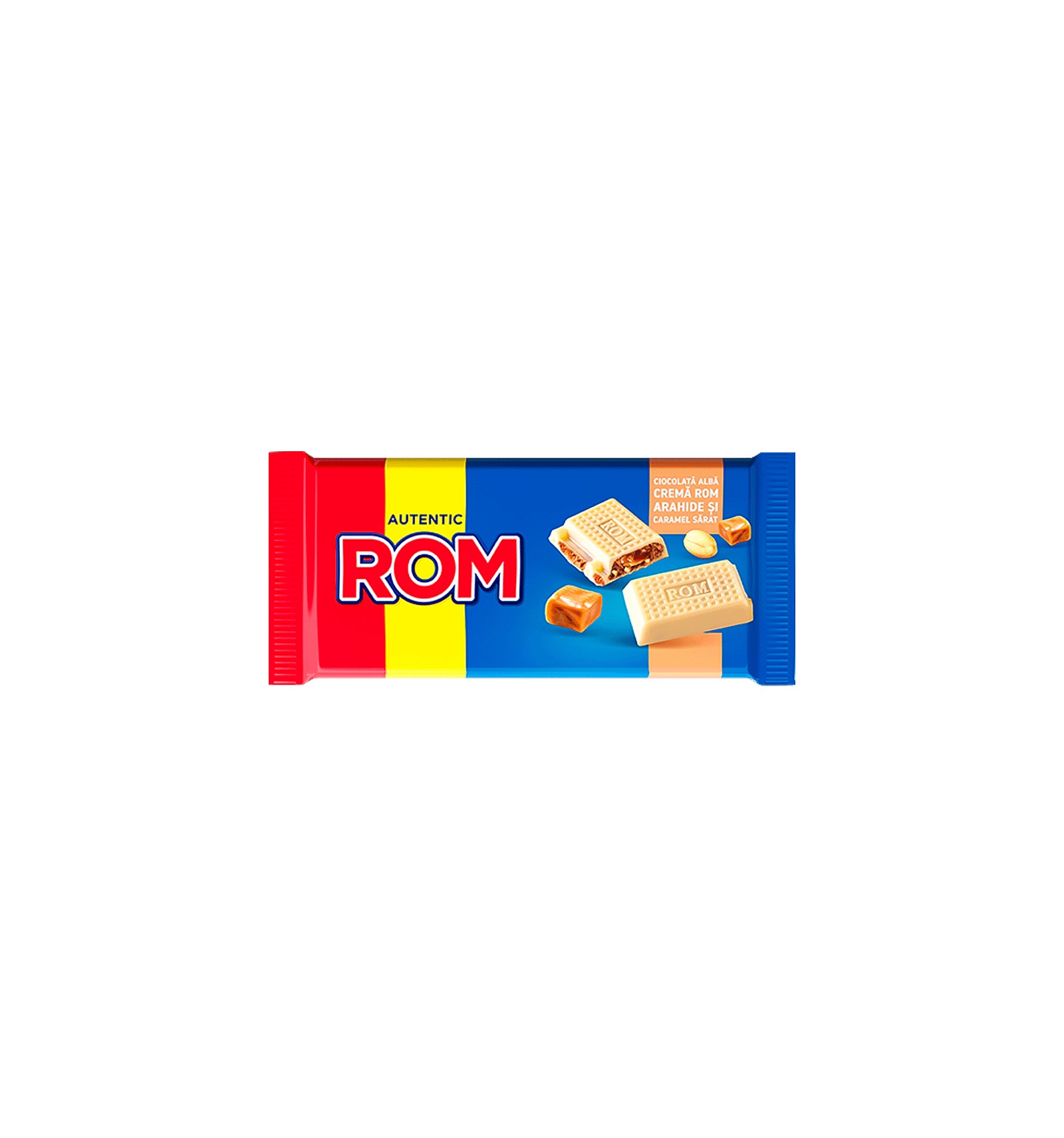 Ingrediente: Zahăr, unt de cacao, lapte praf integral, caramel 11,8% [sirop de glucoză, sirop de glucoză-fructoză, grăsime vegetală (ulei de palmier, ulei de shea), zahăr, grăsime din lapte, zer pudră (din lapte), sare, stabilizatori (monostearat de glicerină, carbonat acid de sodiu), aromă, apă], grăsimi vegetale (ulei de palmier, ulei de shea), lapte praf degresat, pudră de cacao cu conţinut redus de grăsime, derivat din zer pudră (din lapte), agent de umezire (sirop de sorbitol), arahide prăjite 0,4%, sare, sirop de glucoză, rom 0,1%, emulsifianţi (lecitină din soia, poliricinoleat de poliglicerină), arome. Ciocolata albă conţine: substanţă uscată de cacao minimum 29%, substanţă uscată din lapte minimum 20% . Poate conţine urme de fructe cu coajă lemnoasă, gluten, ouă.