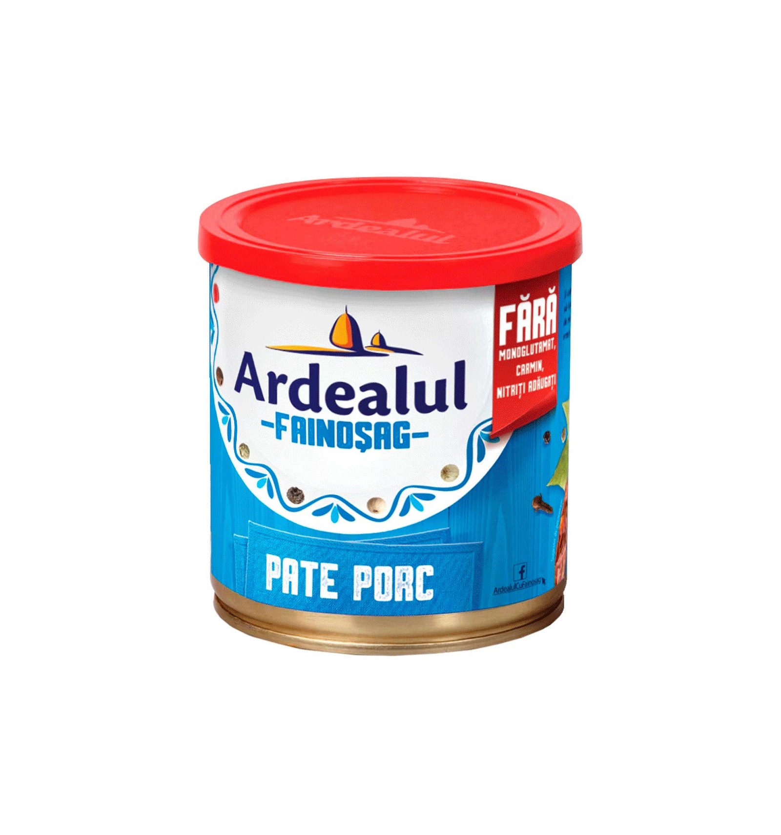 Ingrediente: apa, ficat de porc (20%) (origine UE), slanina, sorici, proteina vegetala din soia, amidon din cartofi, sare, zahar, ceapa, pasta de tomate, condimente, proteina animala din porc, extract de drojdie.