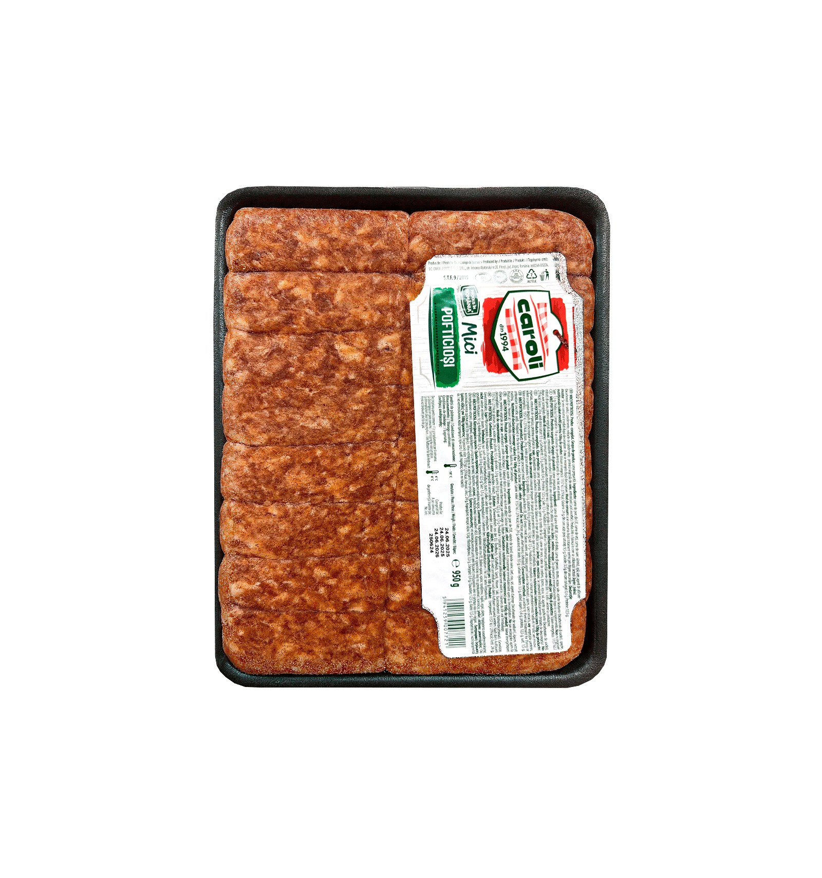 Ingrediente: came de porc (33%)din UE, came de vită (26%), came de oaie (11%), slanina (10%), apă, sare, agent de afânare (bicarbonat de sodiu),condimente, extracte de condimente, fibre vegetale din morcov, antioxidant (acid ascorbic). Produs într-o fabrică în care se utilizează: soia, lactoză (lapte), telină, muştar, grâu (gluten).
