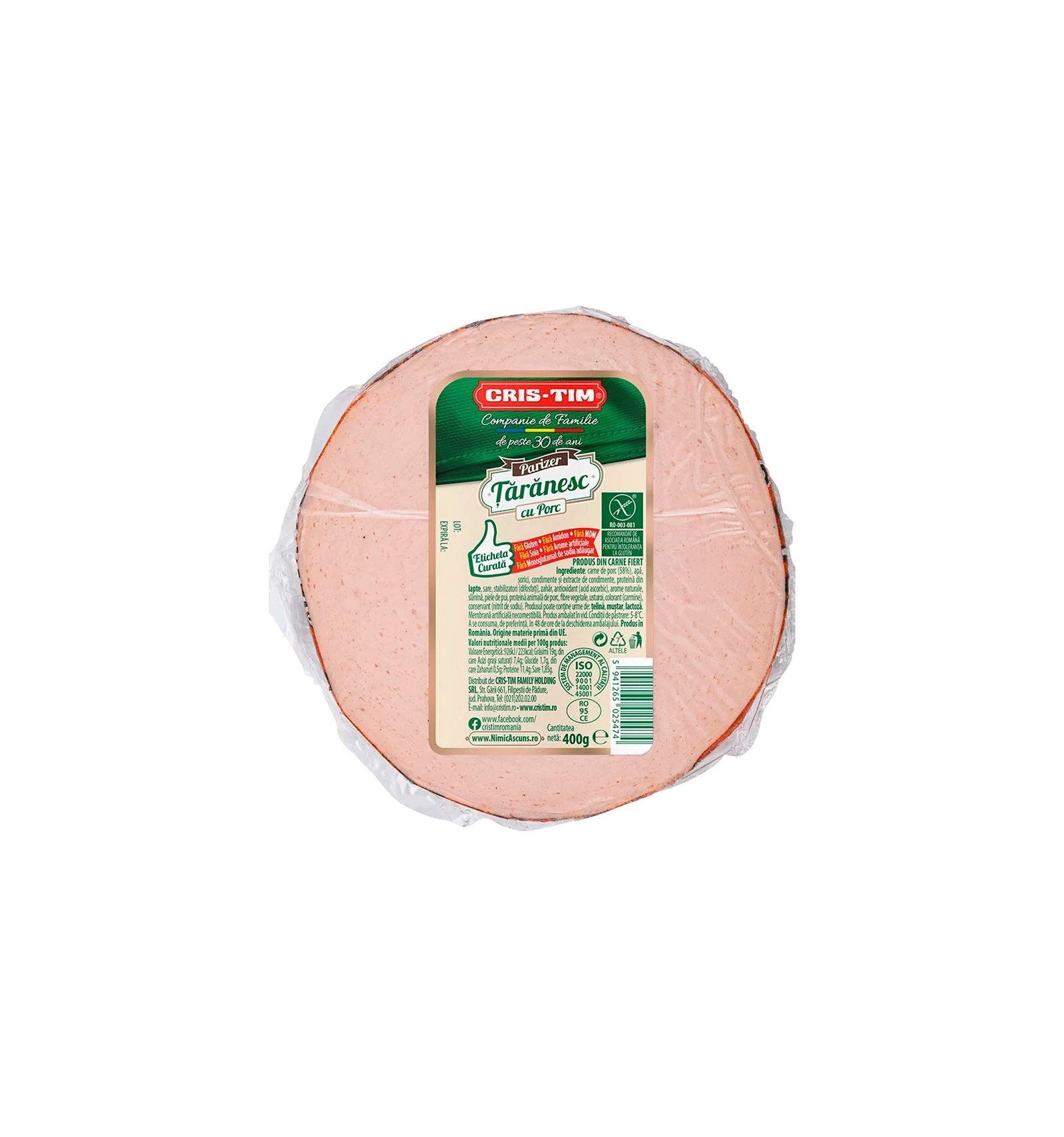 Ingrediente: carne de porc (58%), apă, șorici, condimente și extracte de condimente, proteină din lapte, sare, stabilizatori (difosfați), zahăr, antioxidant (acid ascorbic), arome naturale, slănină, piele de pui, proteină animală de porc, fibre vegetale, usturoi, colorant (carmine), conservant (nitrit de sodiu). Produsul poate conține urme de: țelină, muștar, lactoză.