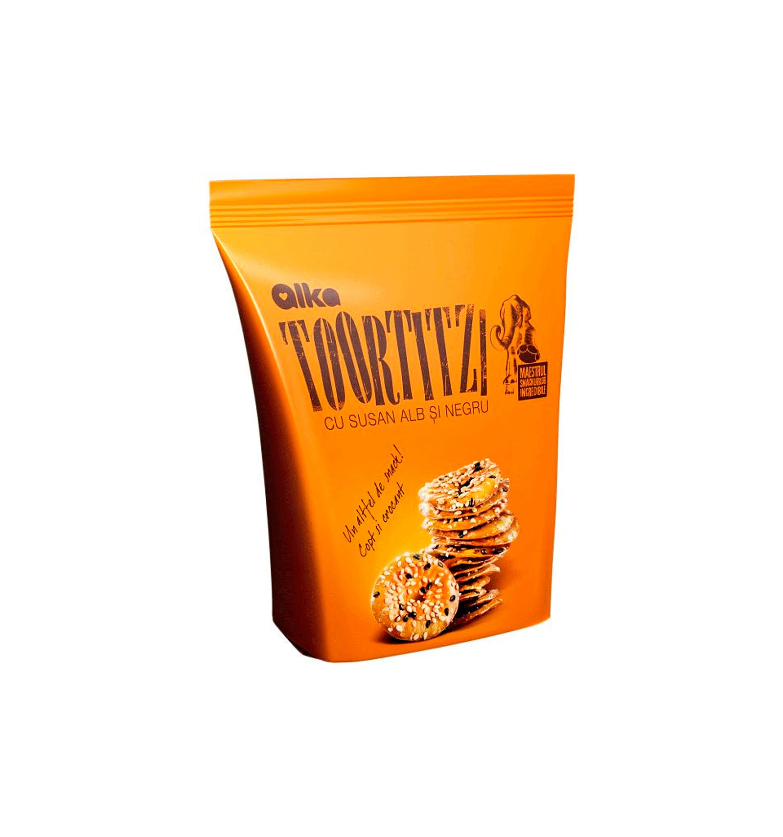 Ingrediente: faina alba de grau, grasimi vegetale (palmier), amestec aromatizant dulce – acrisor 8% (ceapa, maltodextrina, zahar, arome naturale (contin mustar), sare, miere, seminte de mustar, pudra de sos de soia (maltodextrina, sare, soia, grau, apa), chive, acidifiant: acid citric, extract de drojdie, agenti antiaglomeranti: fosfat de calciu, dioxid de siliciu, ulei de floarea soarelui, extract de paprica, antioxidant: extract de rozmarin), zahar, extract de malt din orz, sare de mare, agent de afanare: bicarbonat de sodiu, emulsifiant: lecitina din soia. Poate contine urme de susan.