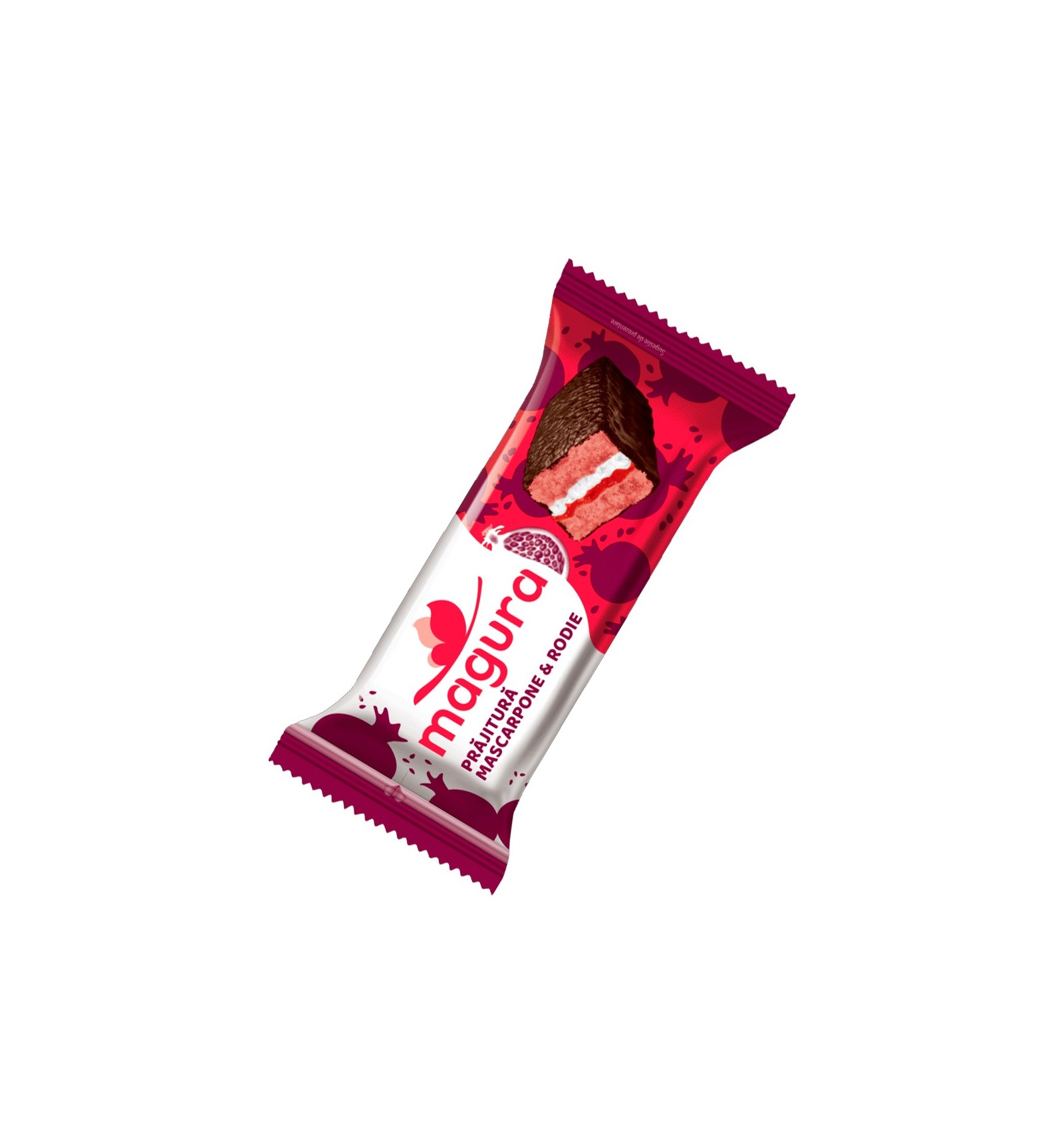 Ingrediente: zahăr, făină de grâu, umplutură de rodie 11% [sirop de glucoză-fructoză, zahăr, suc de rodie reconstituit din concentrat (2,2%), piure de mere, acid (acid citric), stabilizator (pectină), colorant (luteină), concentrat cu rol de colorant din morcov negru, regulator de aciditate (citrati de sodiu), aromă, conservant (sorbat de potasiu)], grăsimi vegetale (ulei de shea, ulei de palmier, ulei de palmier parțial hidrogenat), sirop de glucoză, grăsimi vegetale (ulei de palmier), pudră de cacao cu conținut redus de grăsimi (5,4%), ouă, sirop de glucoză-fructoză, agenți umectanți (sirop de sorbitol, glicerină), lapte praf degresat, alcool etilic rafinat de origine agricolă, agenți de creștere (pirofosfat disodic, bicarbonat de sodiu), emulgatori (esteri poliglicerici ai acizilor grași, lecitină de soia, poliglicerol poliricinoleat), pudră de mascarpone 0,1% [brânză (din lapte), mascarpone (din lapte), sare emulgatoare (citrati de trisodiu, colorant (carmin), arome, sare, conservant (sorbat de potasiu). Poate conține urme de arahide și nuci.